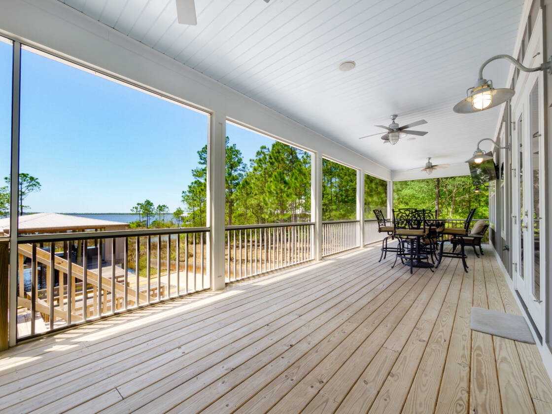 - Screened porch leads to a grilling deck with a built-in propane connection and included grill