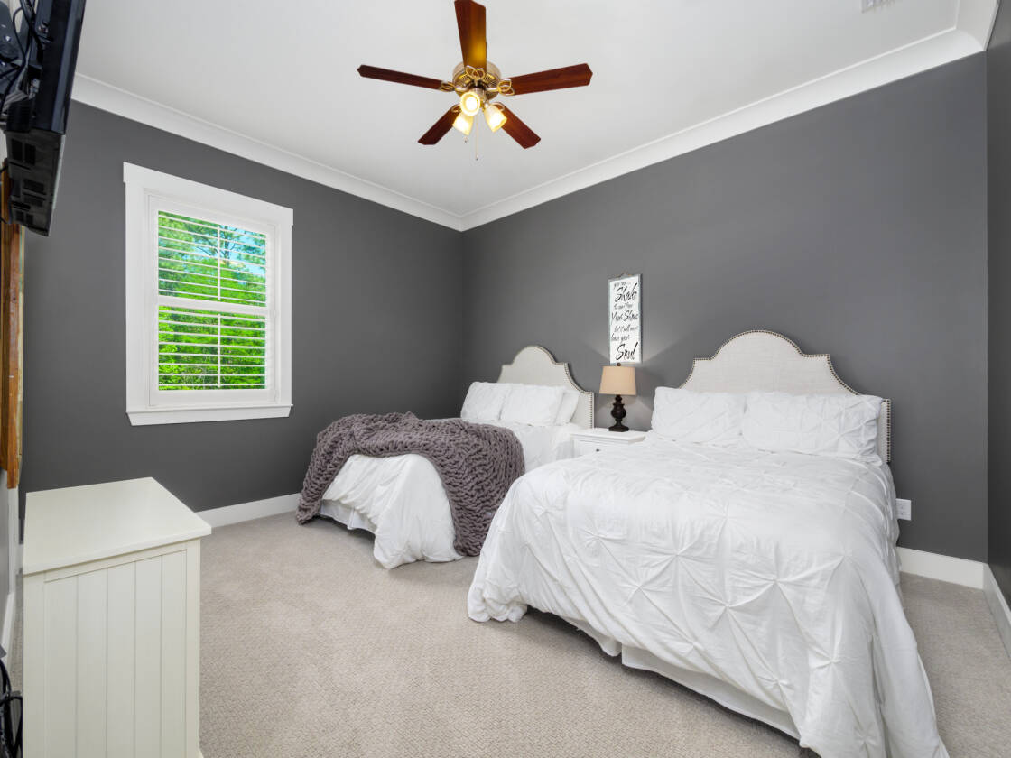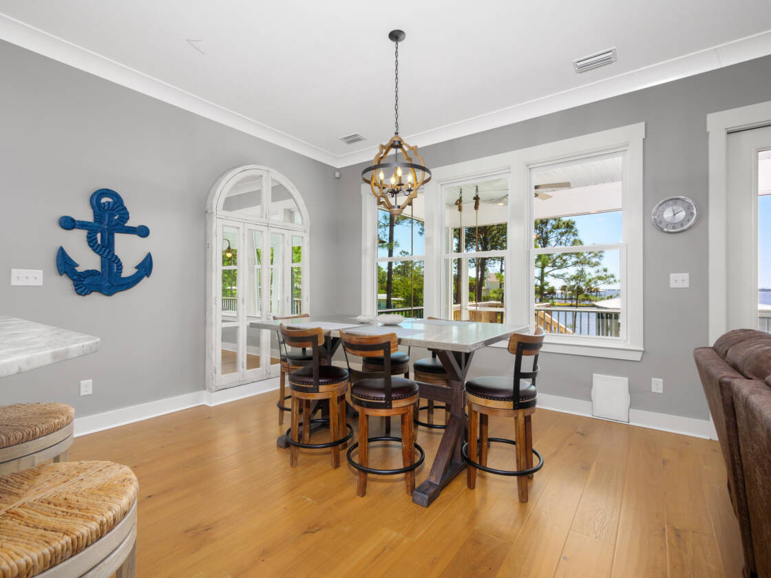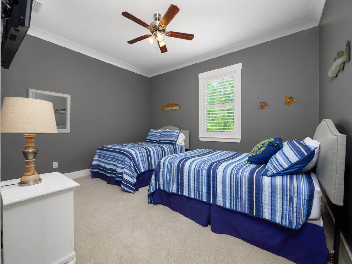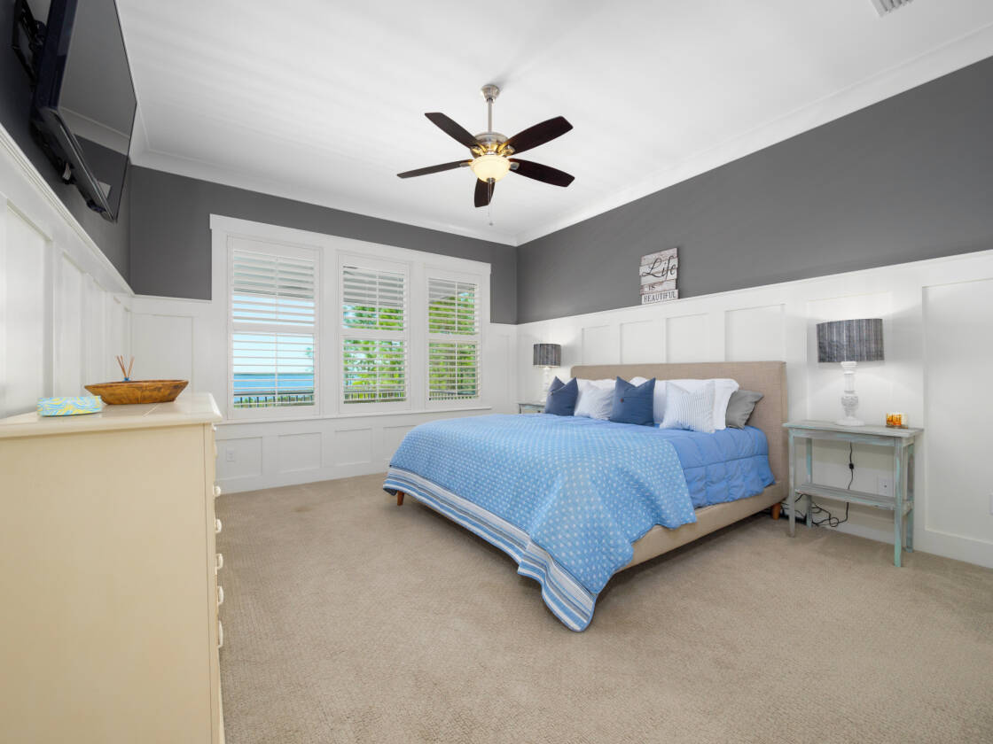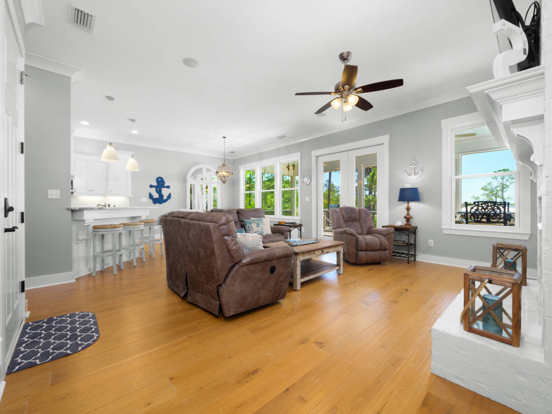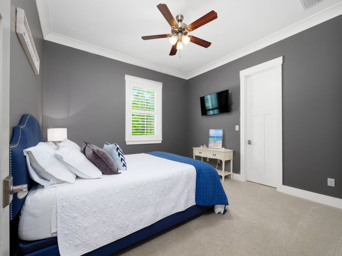 - Wall-mounted TVs are included in all bedrooms, the great room, and on the waterside deck