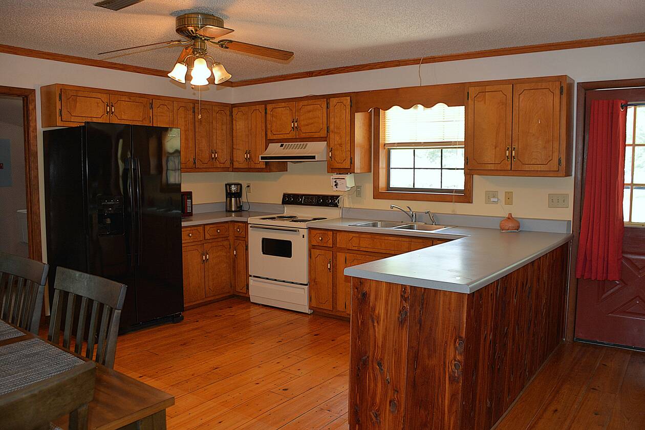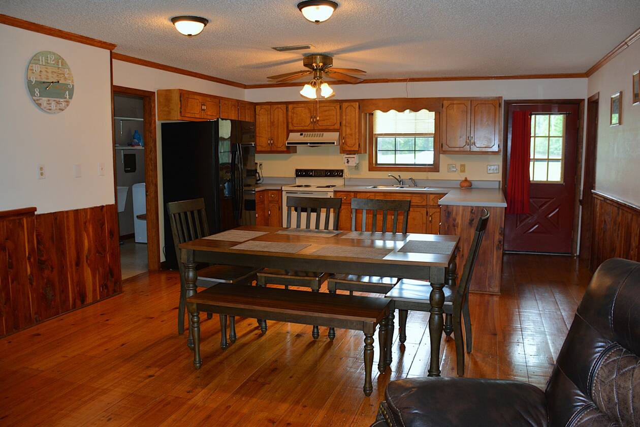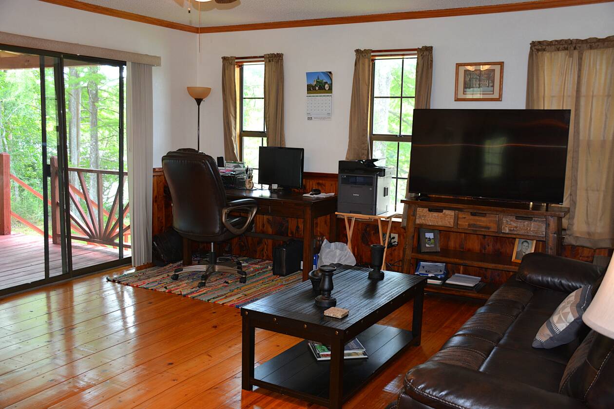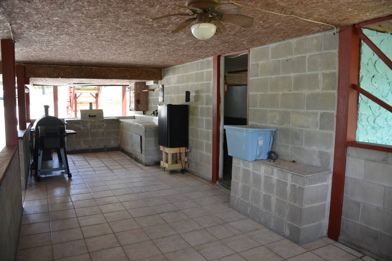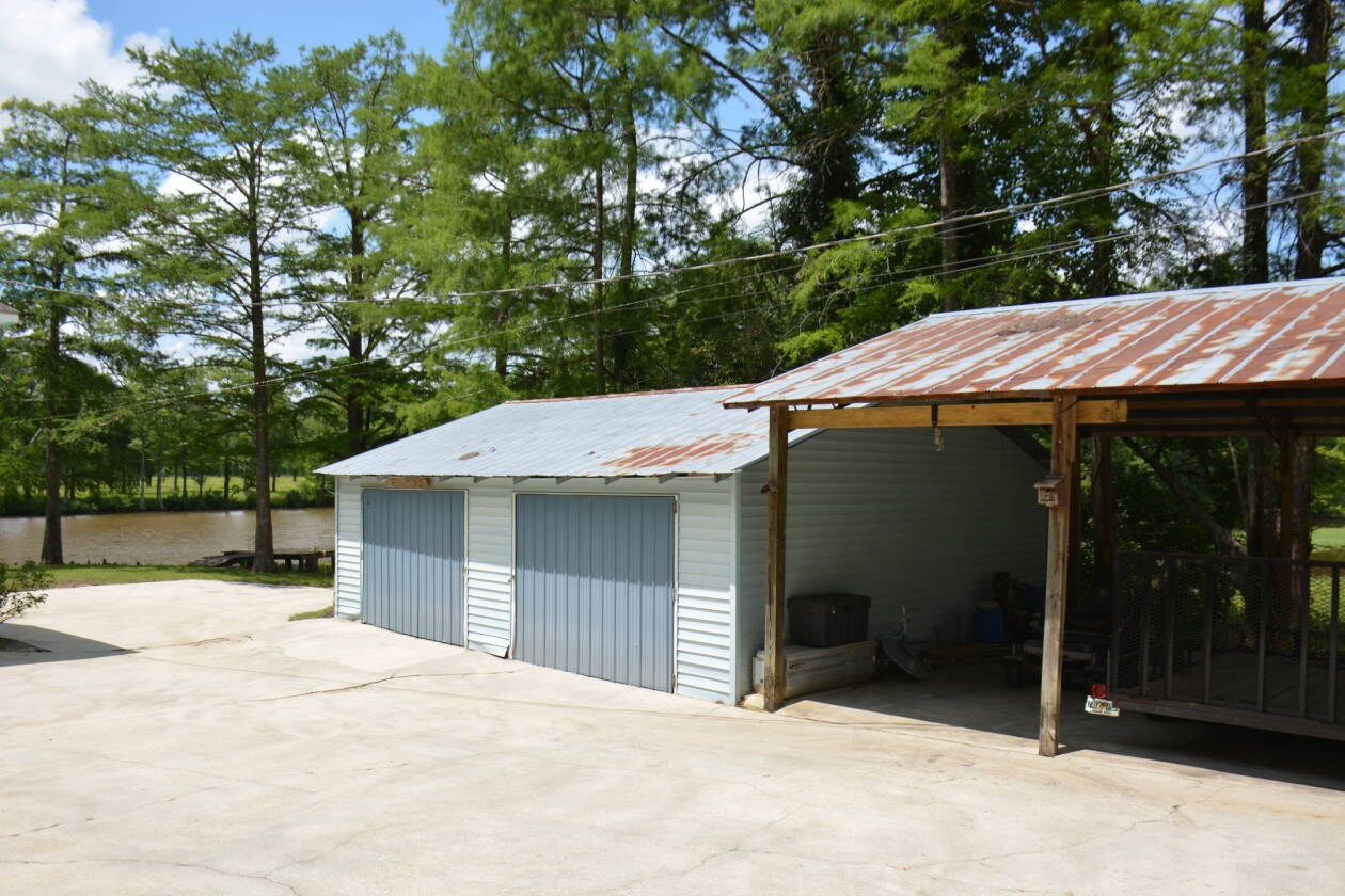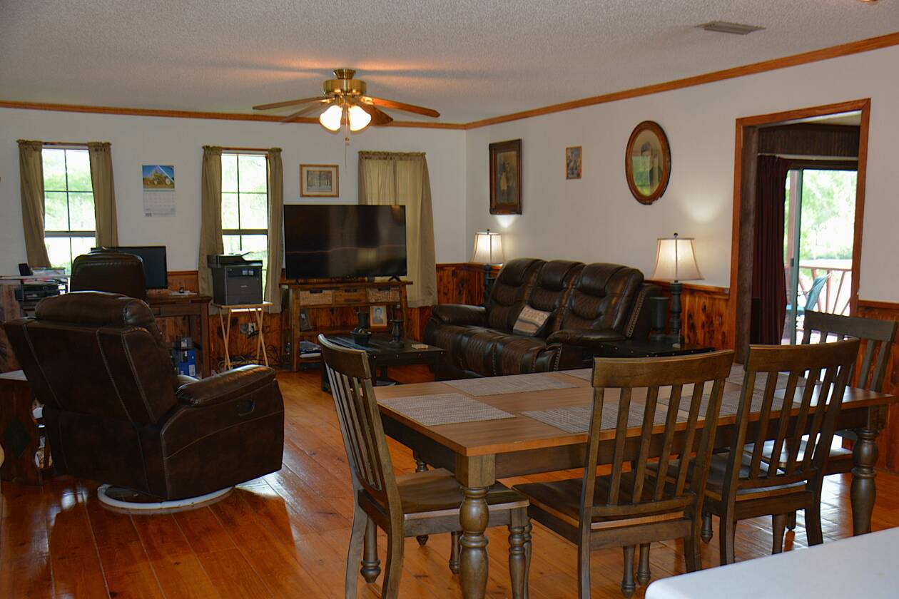 This exceptional 5.6 acre +/- waterfront property has 1,200 feet of water frontage, offering unparalleled privacy and a wealth of amenities. With three docks, stunning landscape views, a convenient boat ramp, and excellent fishing opportunities, this location is perfect for nature enthusiasts. Wildlife, including deer and wild turkeys, can often be seen roaming the area. The property has a new roof installed June 2025 and includes a concrete pad with its own entrance, water, well, and septic system, making it ideal for placement of a mobile home or RV. The outbuilding/workshop features three garage doors; there is a covered area for lawn equipment. The greenhouse needs some TLC. There's also a fantastic covered space for your boat and a dog kennel. The home itself has been partially remodeled and includes two walk-out porches overlooking the water, providing the perfect spot for morning coffee or watching fish leap. Additional highlights include a spacious laundry room with a sink and shelves, a walk-in pantry, and a kitchen with lots of cabinets and countertop space. The main bathroom features a newly tiled shower, new flooring, and a vanity. For added convenience, there's a public dock area just down the street, and the property includes two wells and two septic tanks. The river connects to Point A Road, where a recreational area awaits. There are two parcels that are included in the sale of this property. Those parcel numbers are: 07-06-23-0-001-008.001 & 07-06-23-0-001-008.000.