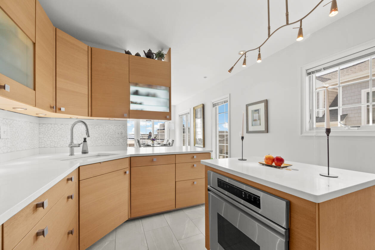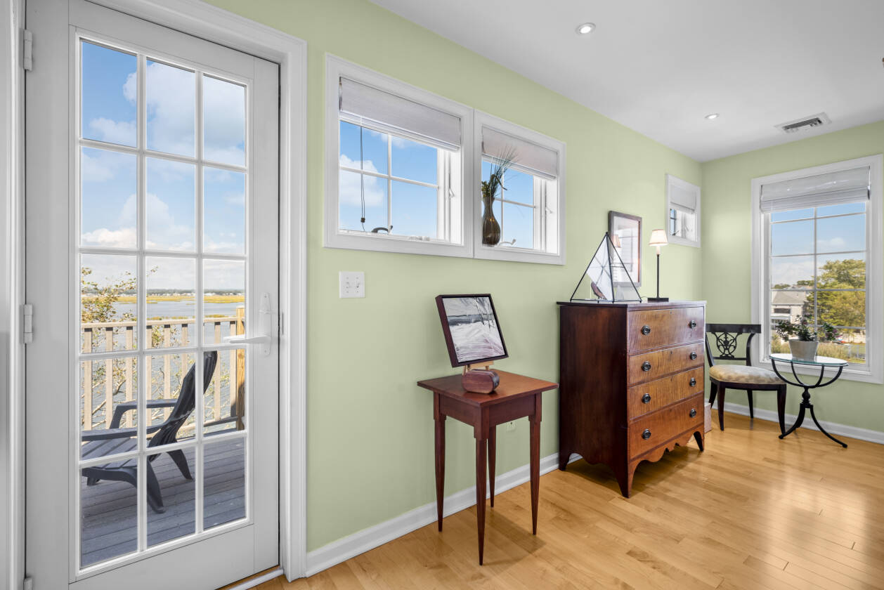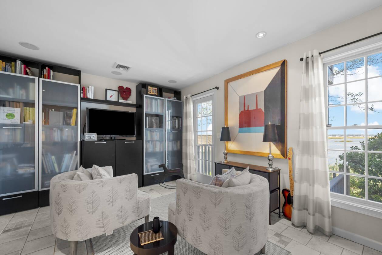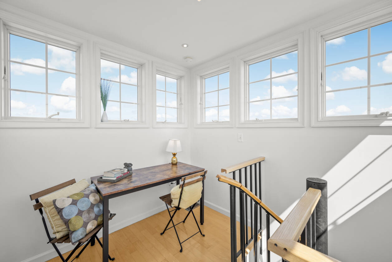 As a unique bonus, a rooftop widow’s walk provides panoramic views of Long Island Sound, Charles Island, and the Housatonic River—an inspiring setting for a home office or private sanctuary.