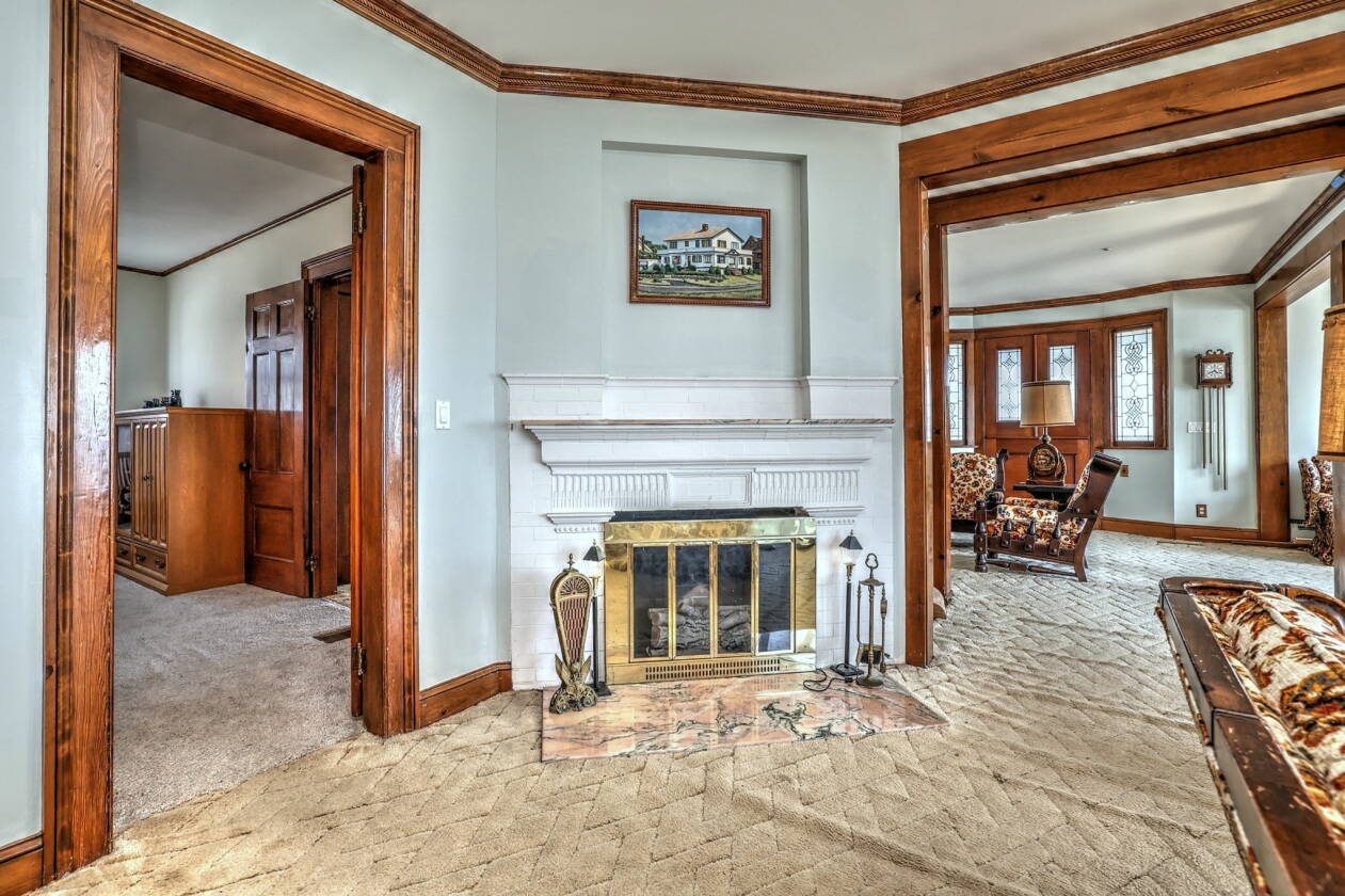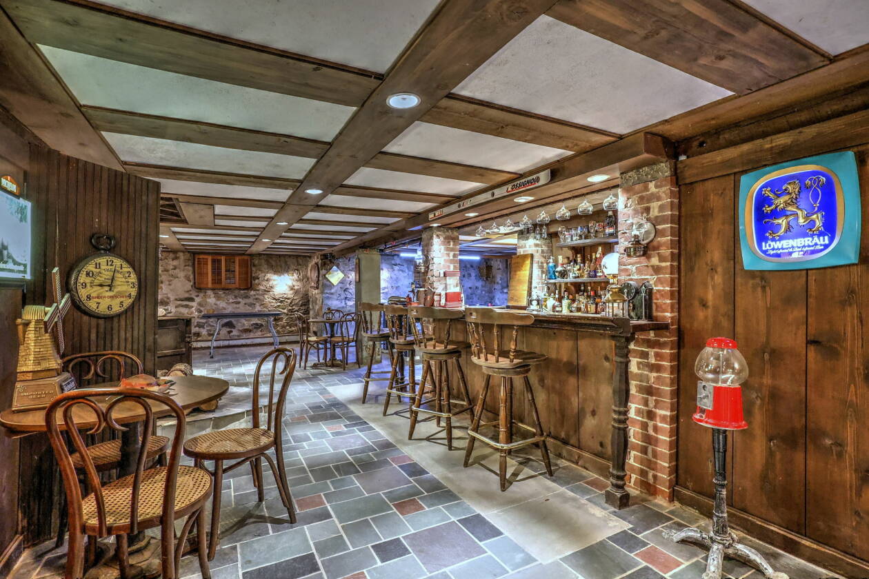 The finished lower level adds versatile bonus space, complete with a rec room, built-in bar, belly stove, and ample storage.