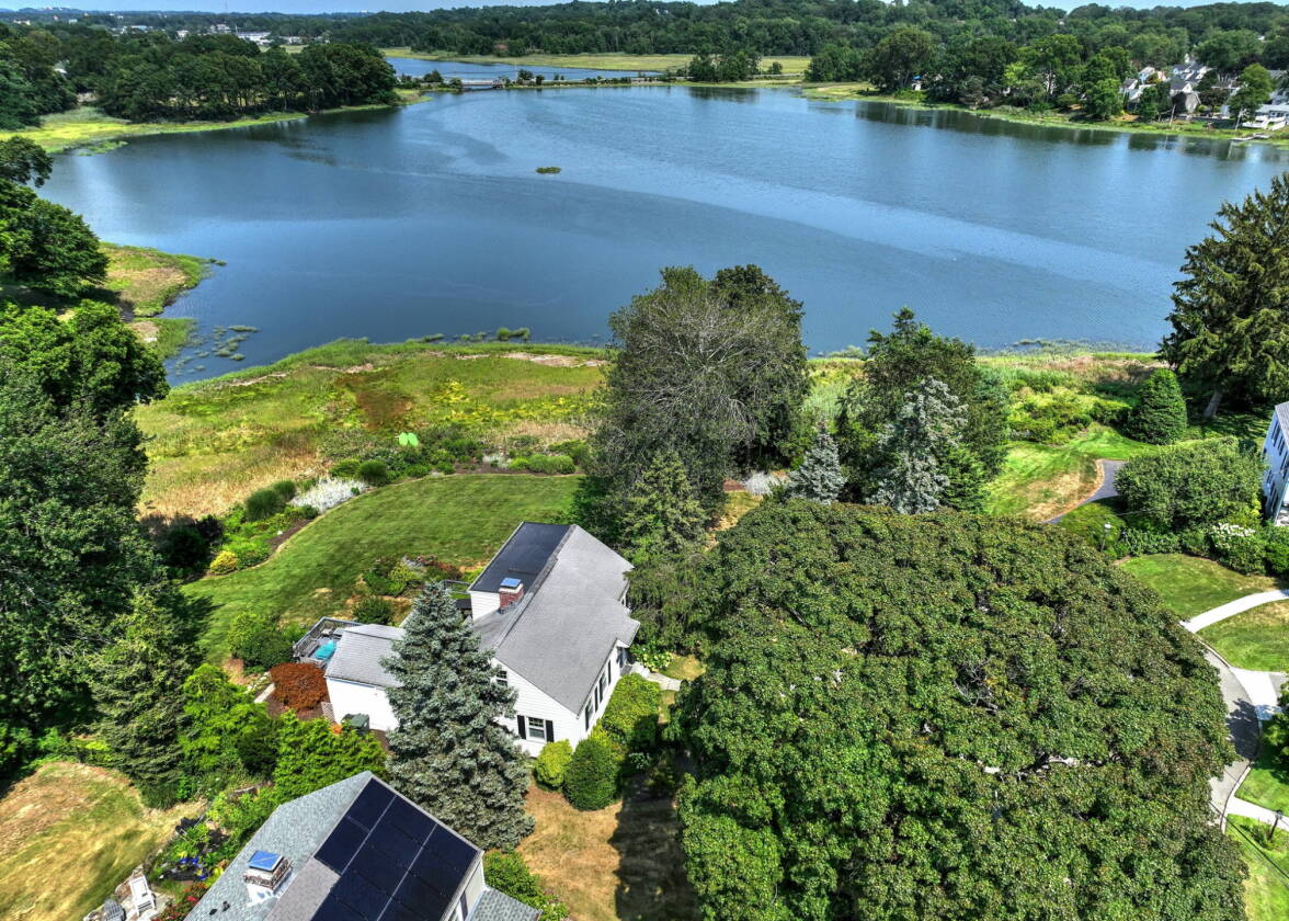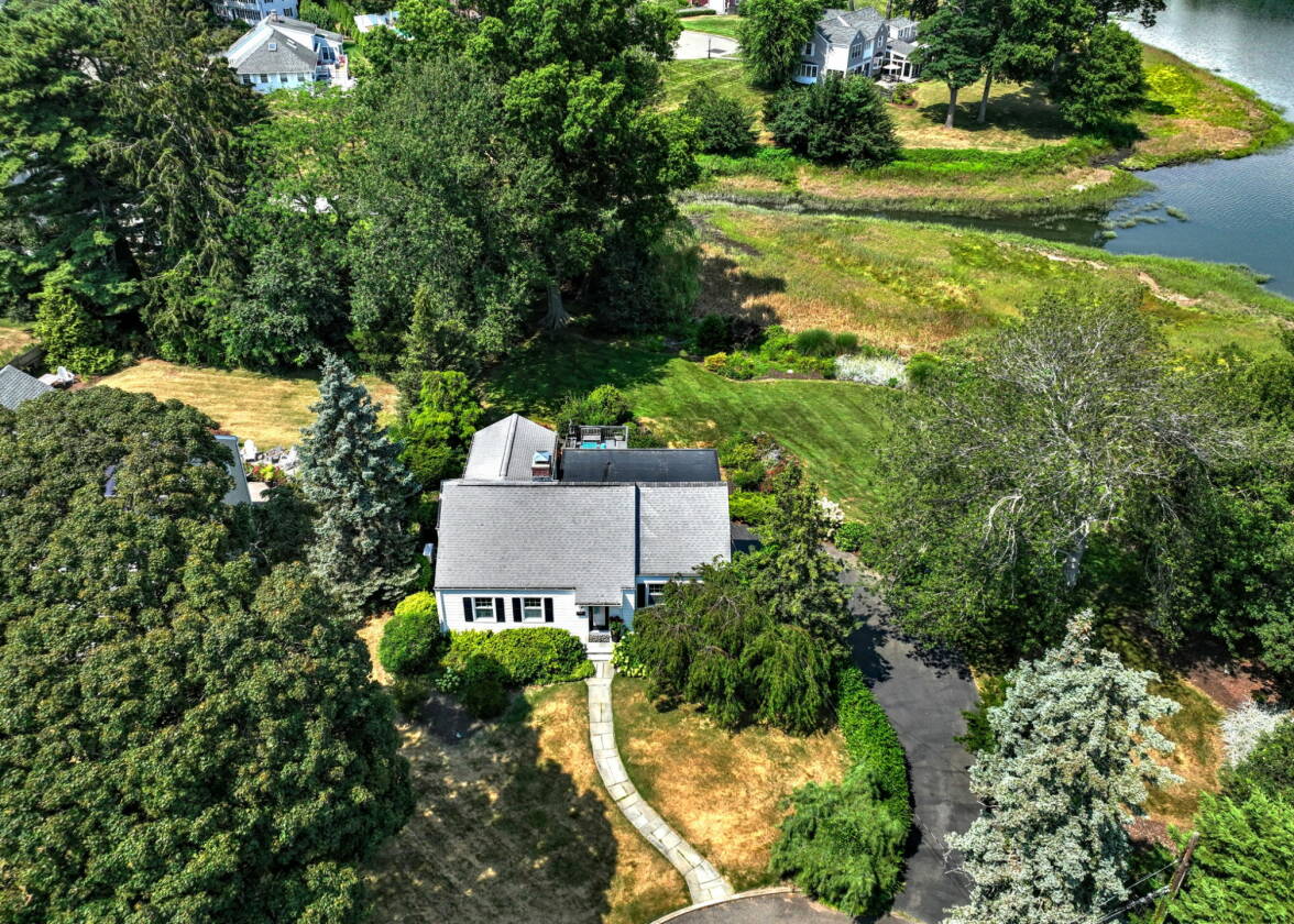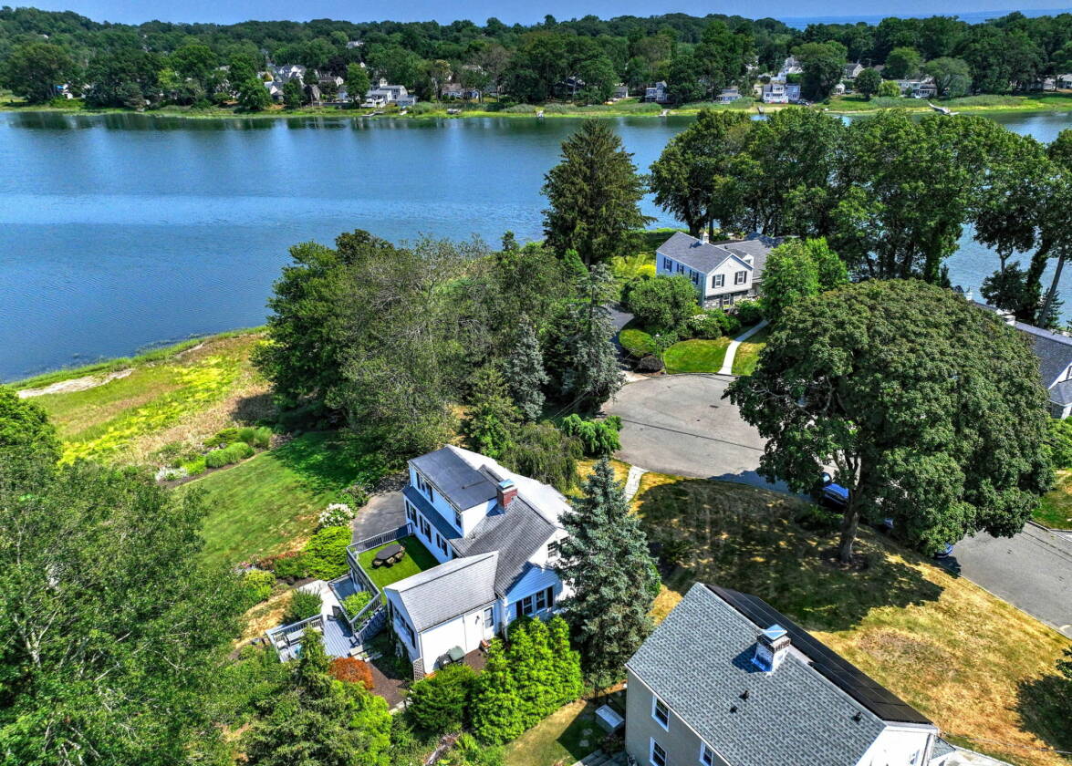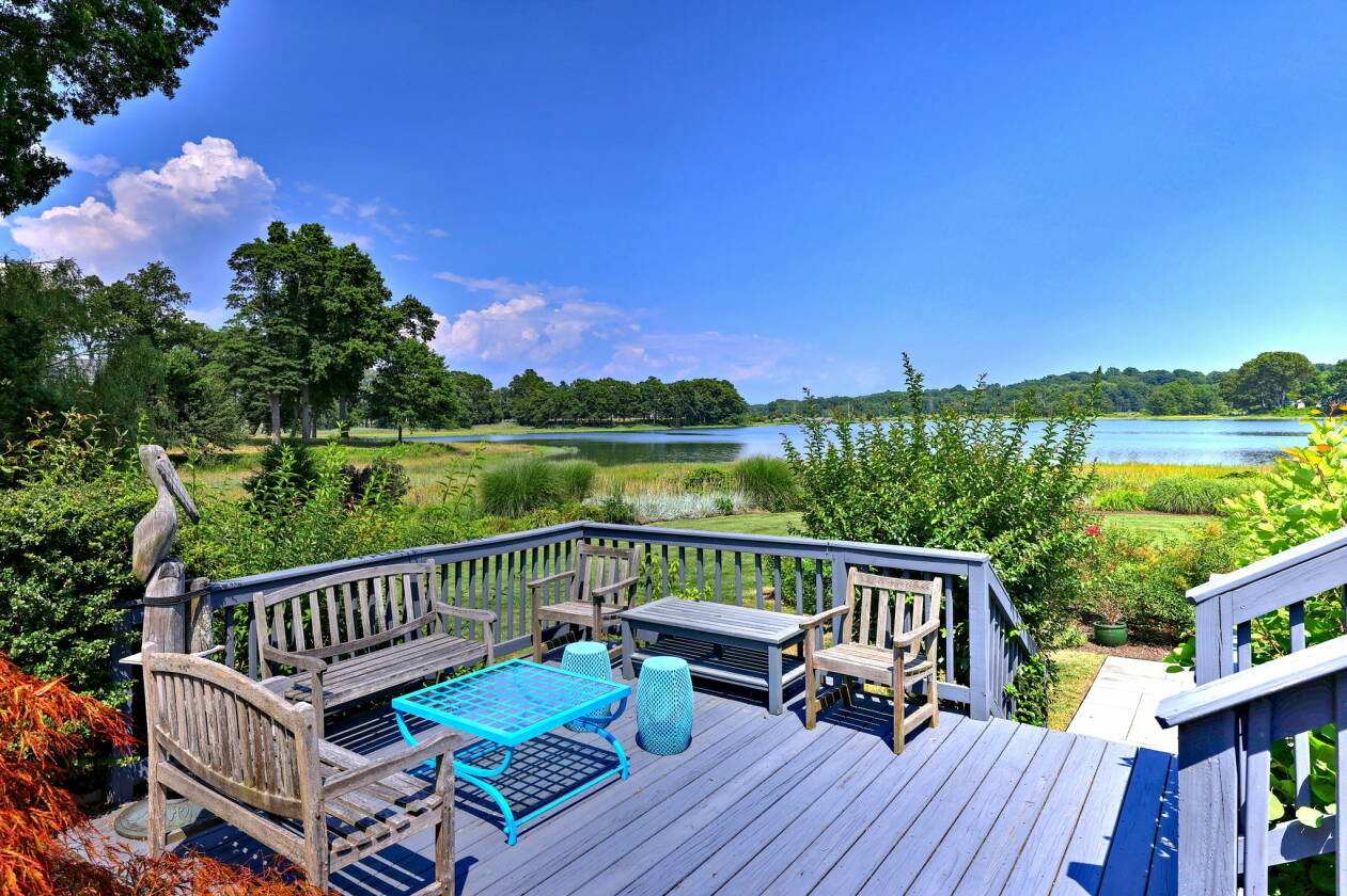 The four-bedroom home with two full baths has hardwood floors and water views from nearly every room. It features a sun-filled living room with fireplace, a formal dining room and a remodeled kitchen with granite countertops and stainless steel appliances. The adjacent family room opens onto a spacious, two-tiered waterside deck—ideal for entertaining or simply enjoying the peaceful waterfront setting.