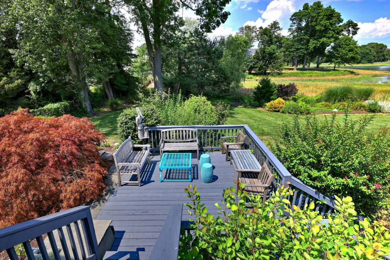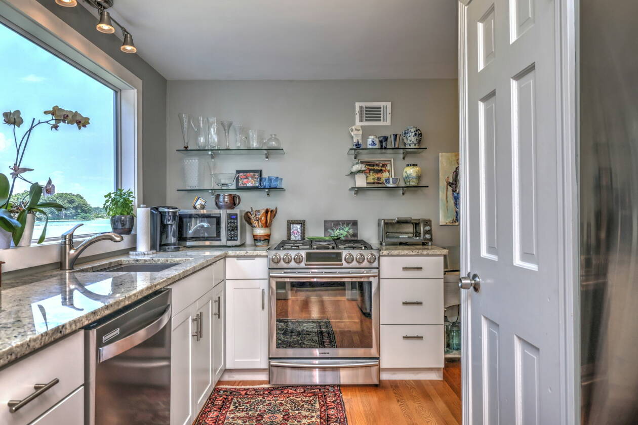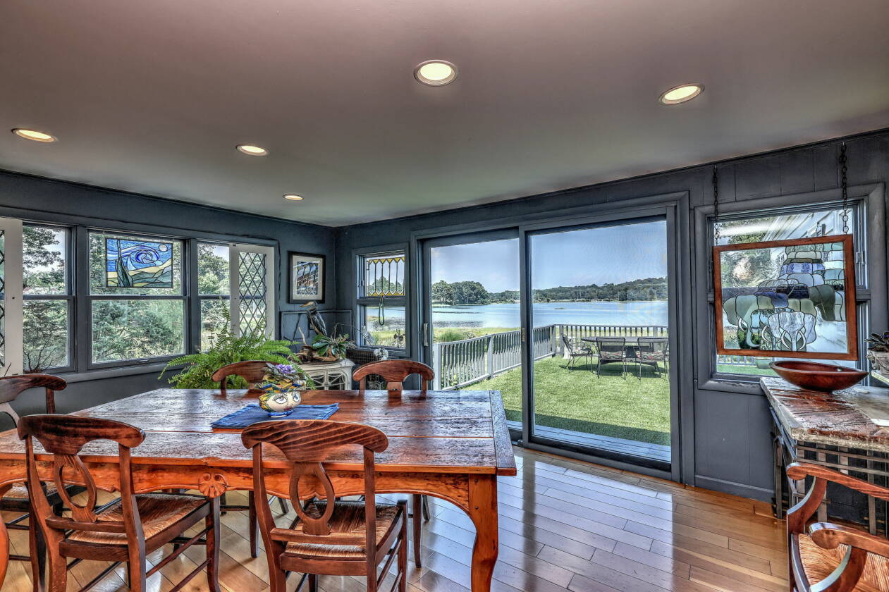 The four-bedroom home with two full baths has hardwood floors and water views from nearly every room. It features a sun-filled living room with fireplace, a formal dining room and a remodeled kitchen with granite countertops and stainless steel appliances. The adjacent family room opens onto a spacious, two-tiered waterside deck—ideal for entertaining or simply enjoying the peaceful waterfront setting.