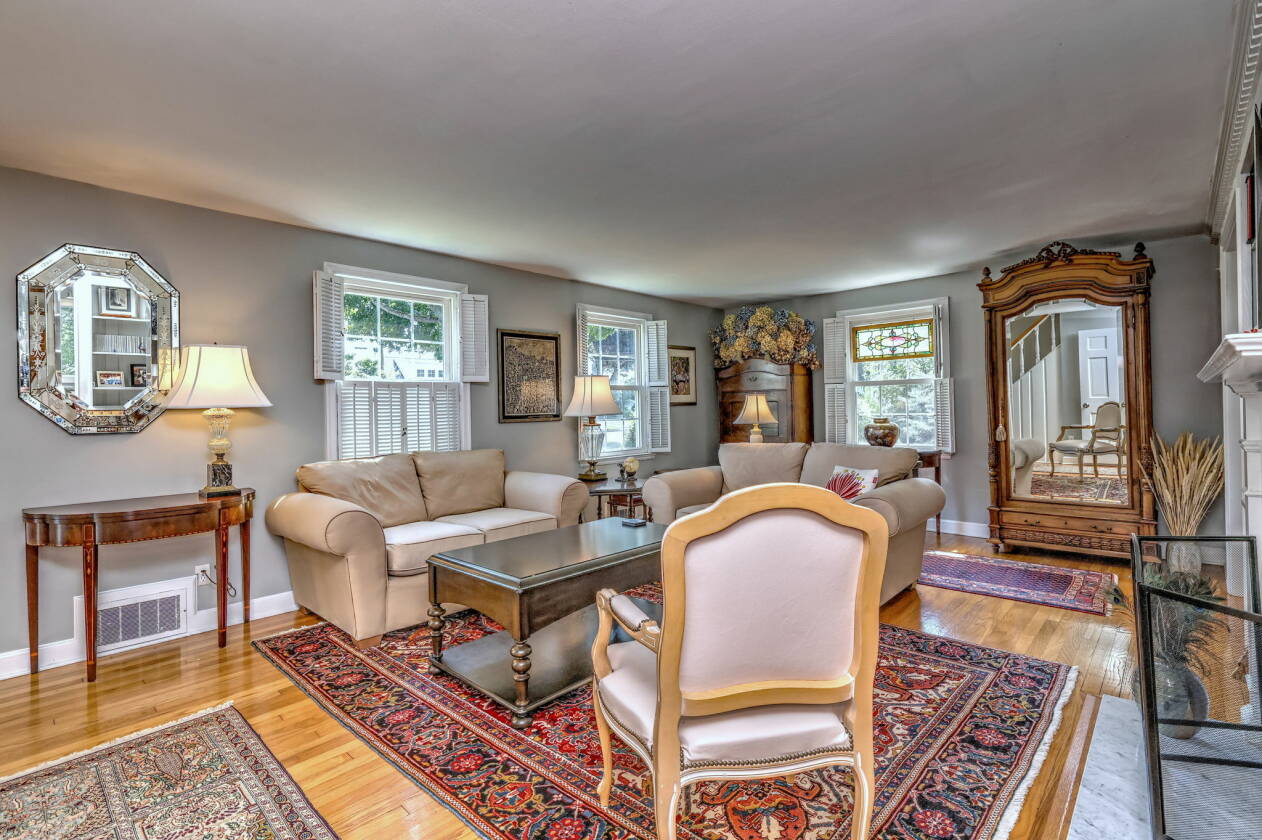 The partially finished lower level includes a workshop and recreation room with entry to a three-car garage. A private driveway and ample on-street parking make hosting gatherings easy.