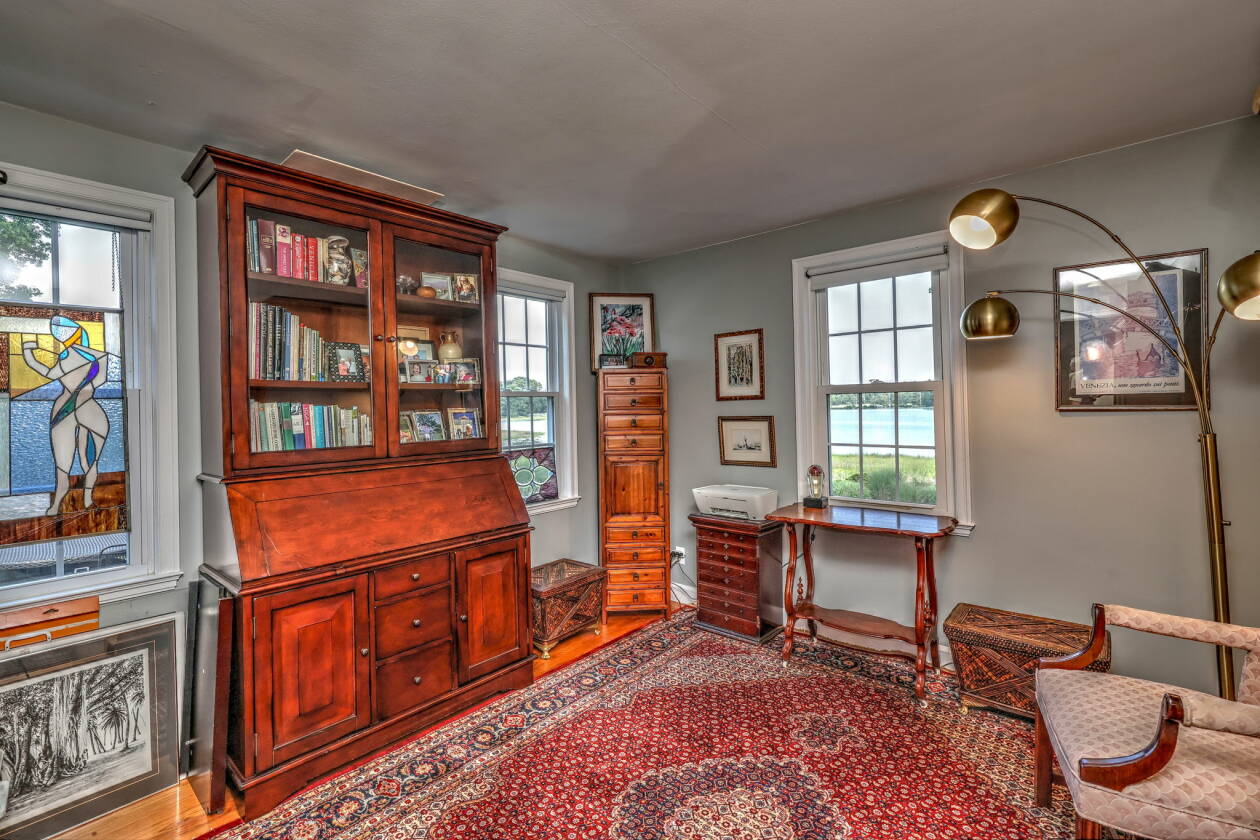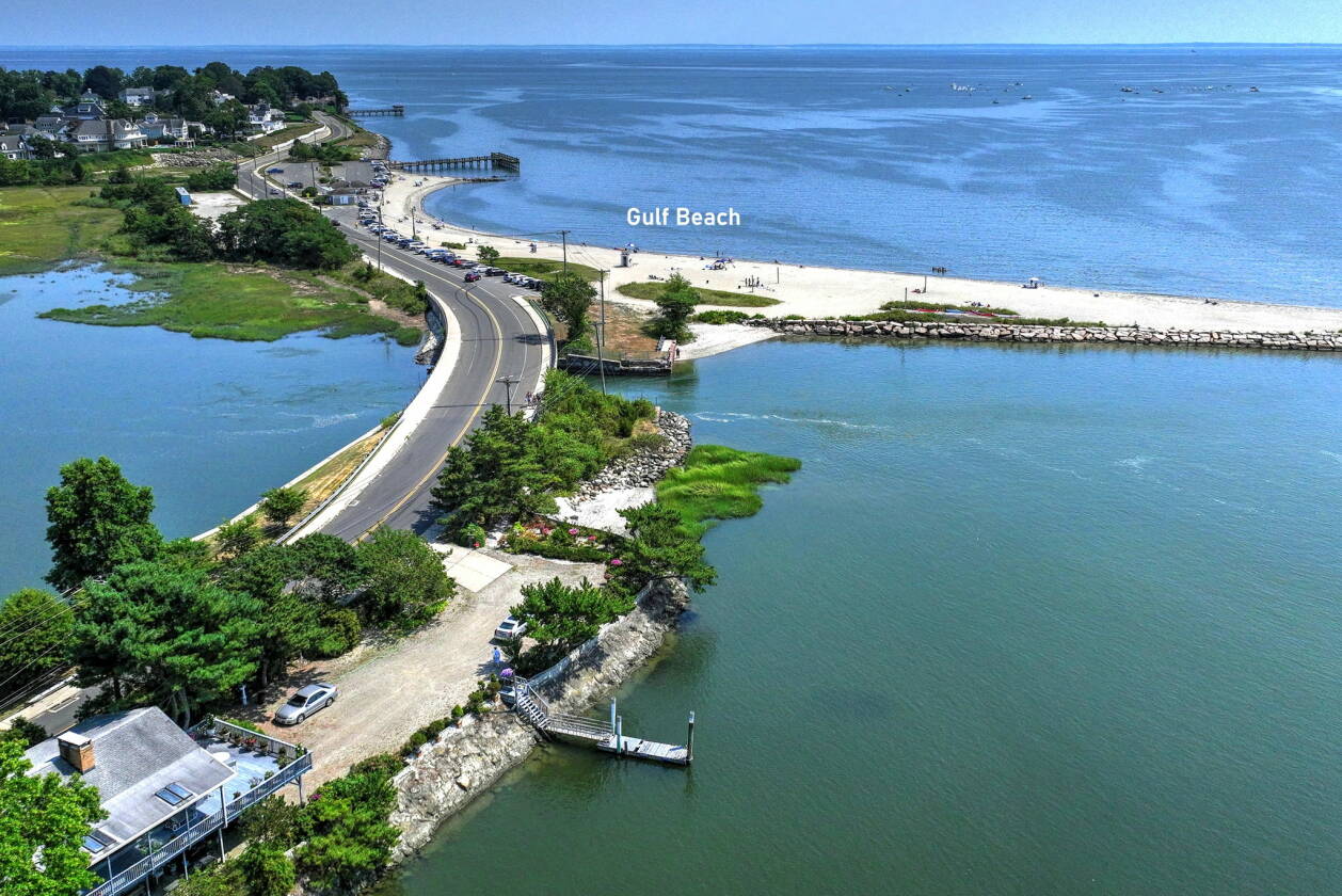 Situated on over an acre of beautifully manicured lawn with lush gardens and natural seagrass, this direct waterfront property overlooks the picturesque Gulf Pond. Tucked away on a quiet cul-de-sac in the sought-after Gulf Beach neighborhood, this updated classic Cape offers the perfect blend of charm, comfort, and location.