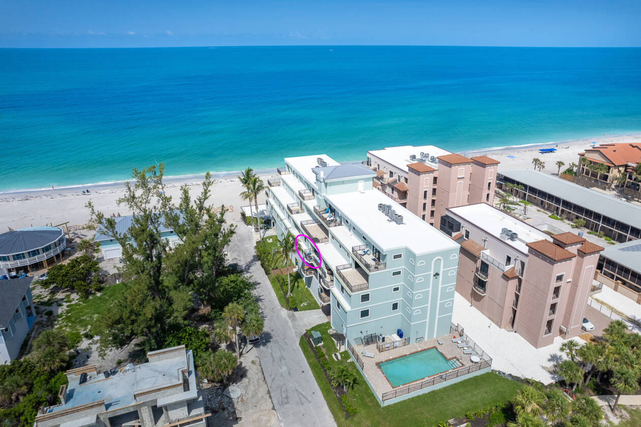 Enjoy the Gulf Coast lifestyle at The Palms of Manasota Key with beach access and partial Gulf views from your Balcony, Living Room, and Primary Bedroom. The Palms of Manasota Key is a special place offering a lifestyle like no other. Never miss a sunset with your toes in the sand. Walk or take advantage of free golf cart service to local restaurants, shops, and the seafood market. Manasota Key is famous for its old Florida charm, and quiet, relaxed, comfortable pace. Here you can experience world-class fishing, boating, kayaking, paddle boarding, golfing, and dining in the heart of Englewood and surrounding villages of Venice and Boca Grande. This meticulously maintained, second-floor residence offers incredible views of the sapphire blues and emerald greens of the beautiful Gulf waters. The interior finishes include wood plank tile flooring, stainless appliances plus granite tops in the kitchen and quartz in the baths. Lounge by the heated pool or relax on your balcony with the peaceful sound of waves lapping the shore. This stunning residence is ready for immediate enjoyment. Furnishings available under separate agreement. Do not miss this opportunity!