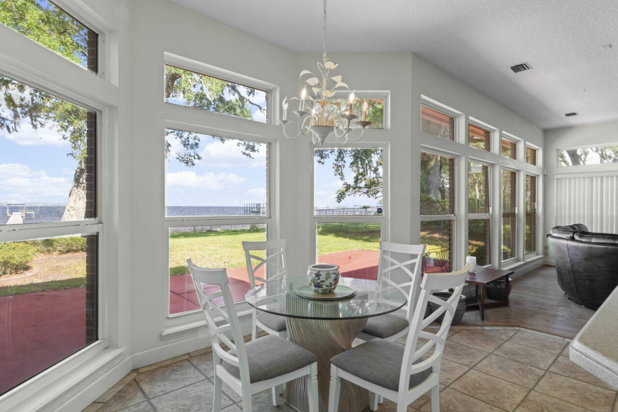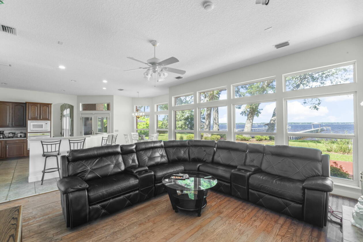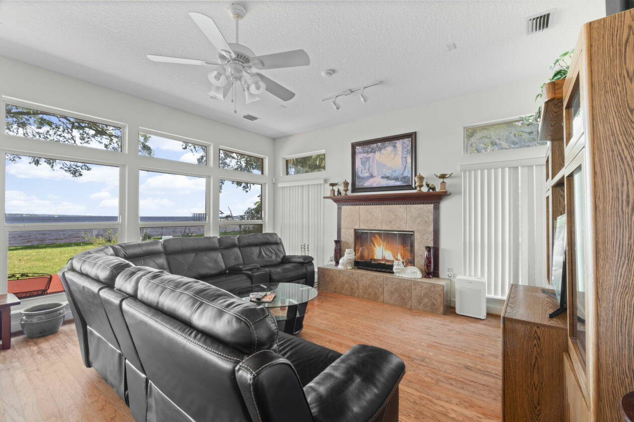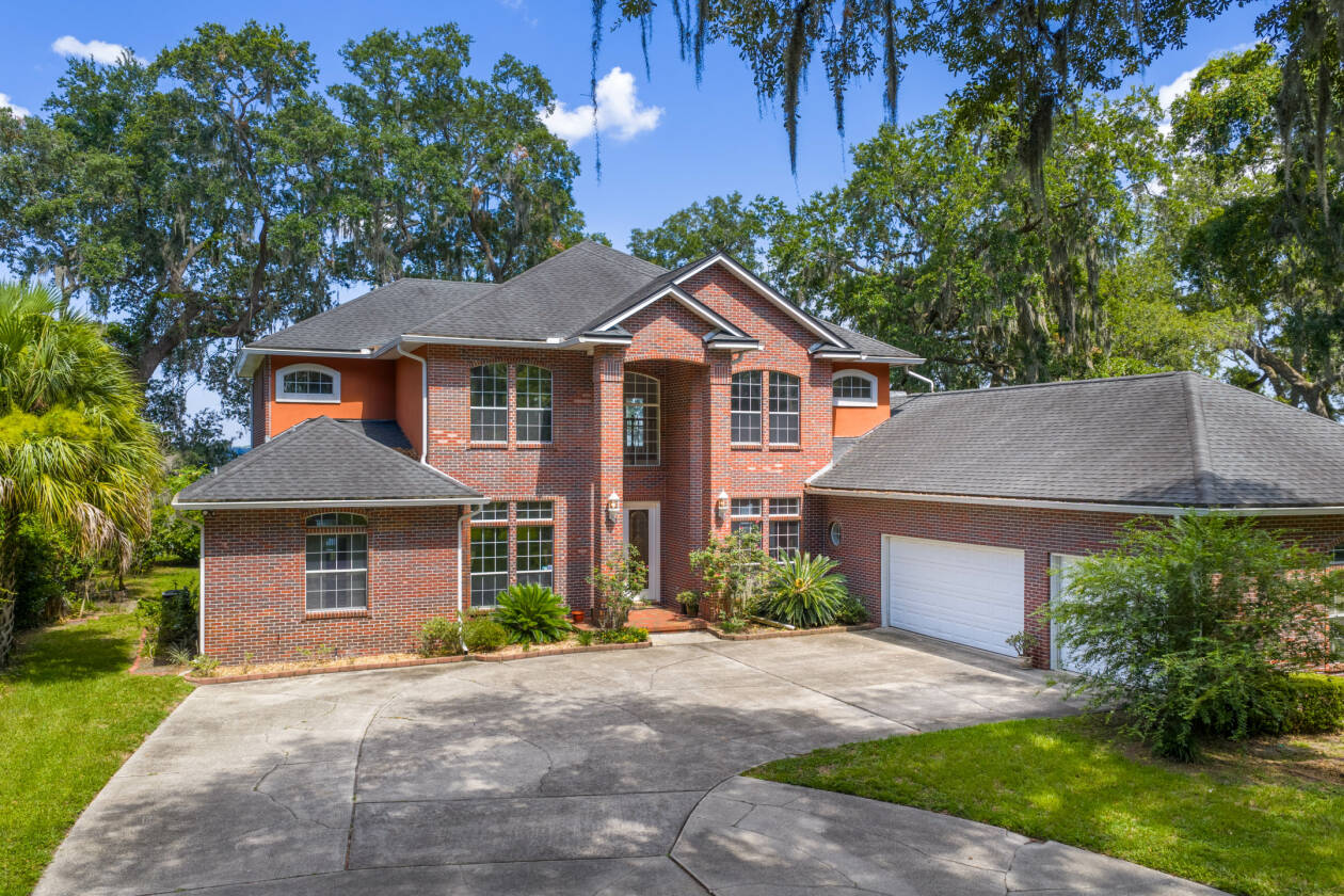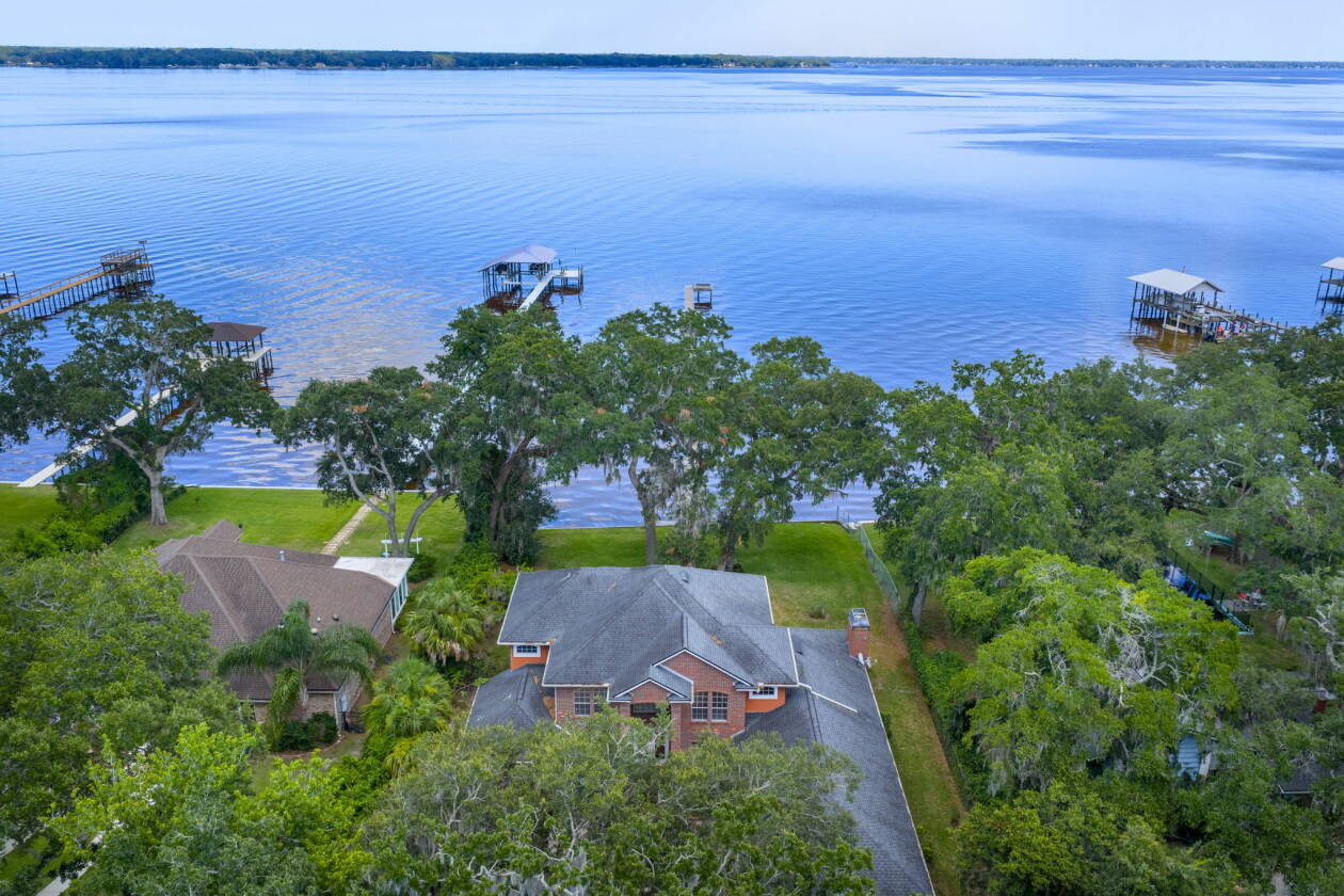 If you are interested in a classic brick home on the St. Johns River look no further! This nearly 3500 square foot two story home is situated directly on the river and has outstanding views. The primary suite is on the first floor along with an adjoining office/nursery. There is also a second bedroom suite downstairs. Upstairs are two more bedrooms with a shared bath and a large bonus/entertainment room. The .83 acre property is gated and fenced, there is a large patio, a fairly recent dock in good condition and a three car side entry garage. This is a fine custom home located in desirable Fleming Island with highly rated schools, golf courses, shopping and more. A special note! This home has good elevation and flooding has never been an issue here! Call for your private tour of this beautiful waterfront home!