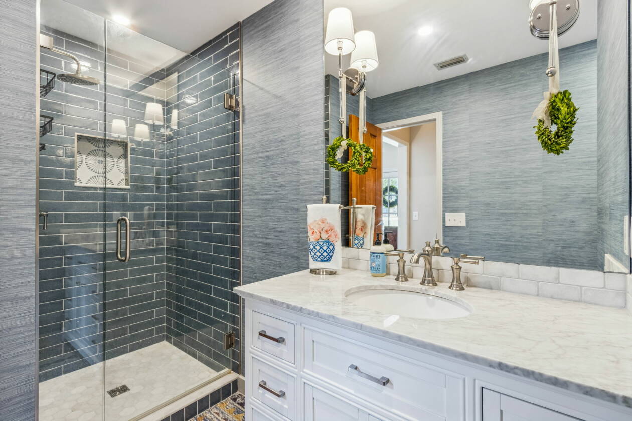 Three additional bedrooms are also located upstairs, including one with an en-suite bath and two that share an oversized hall bathroom. An additional family room provides flexible living space, while the upstairs laundry adds everyday convenience without sacrificing elegance.