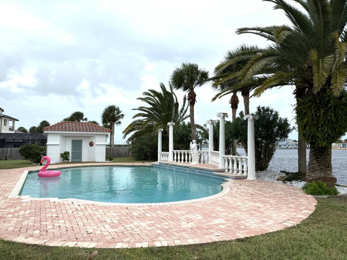 Outdoors, enjoy the ultimate Florida lifestyle with a sparkling saltwater pool with cascading fountains, a detached pool cabana with full bath, and a newly refurbished dock ready for your boat or morning coffee by the water. The private gated entry, three-car garage, freshly painted exterior, updated irrigation, and lush tropical landscaping complete this serene retreat.