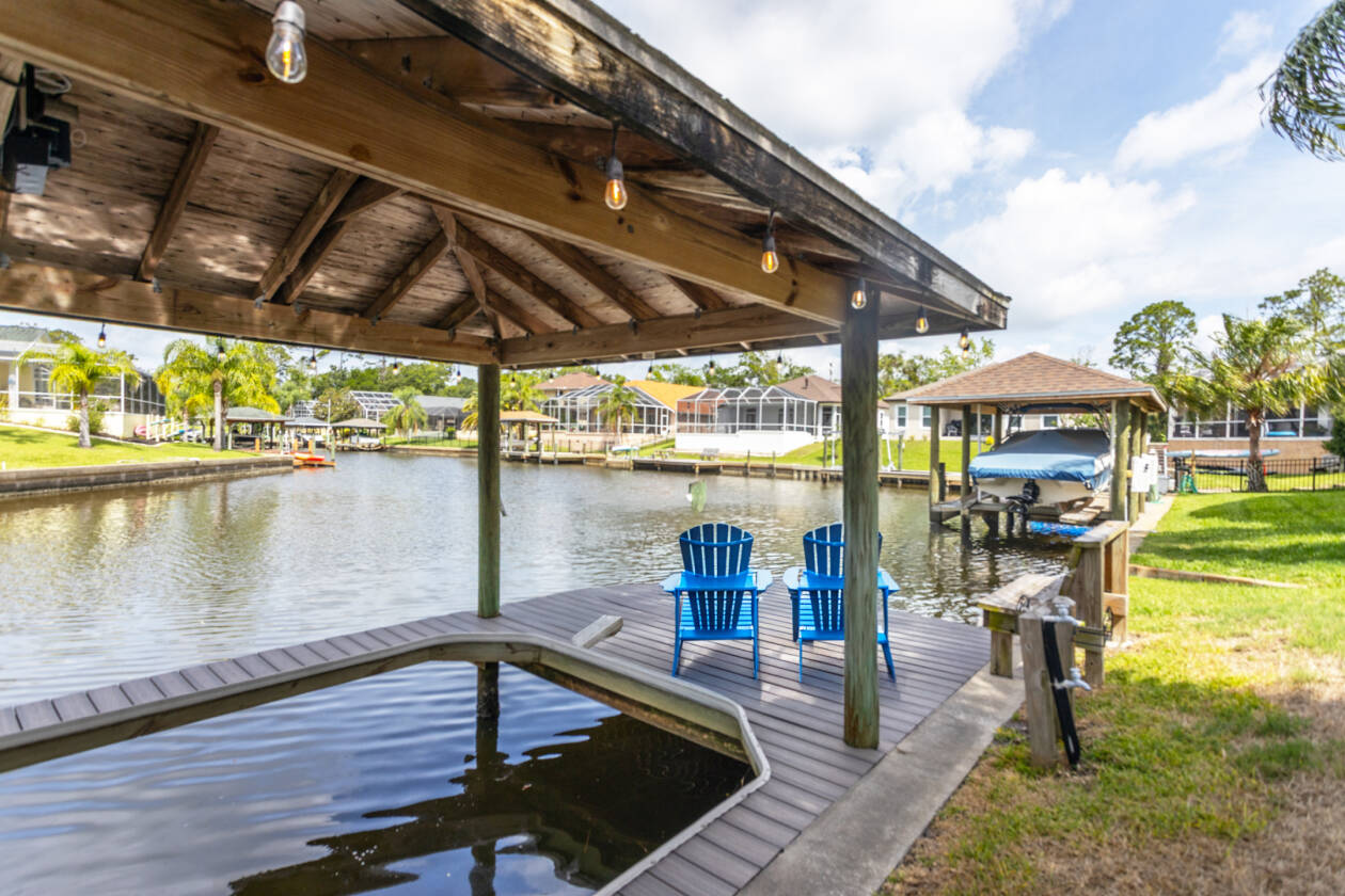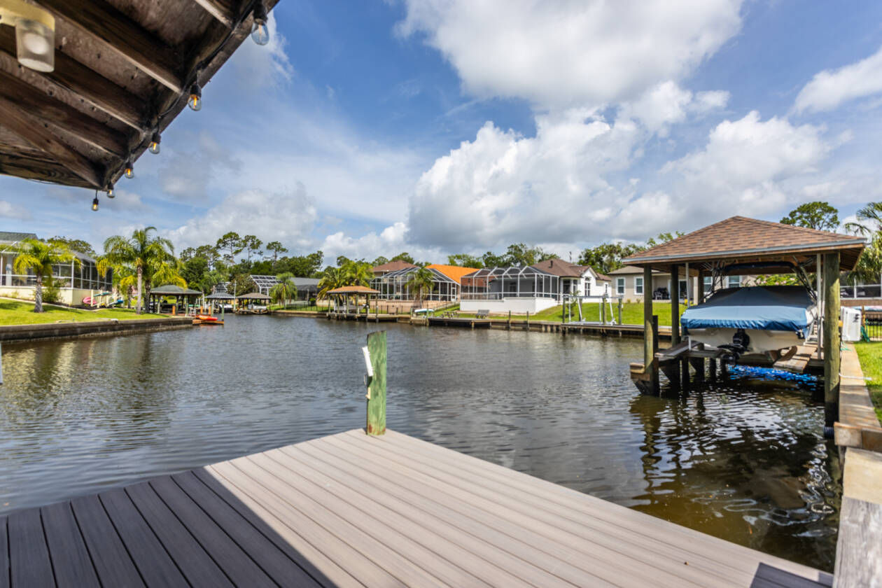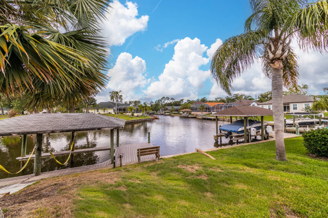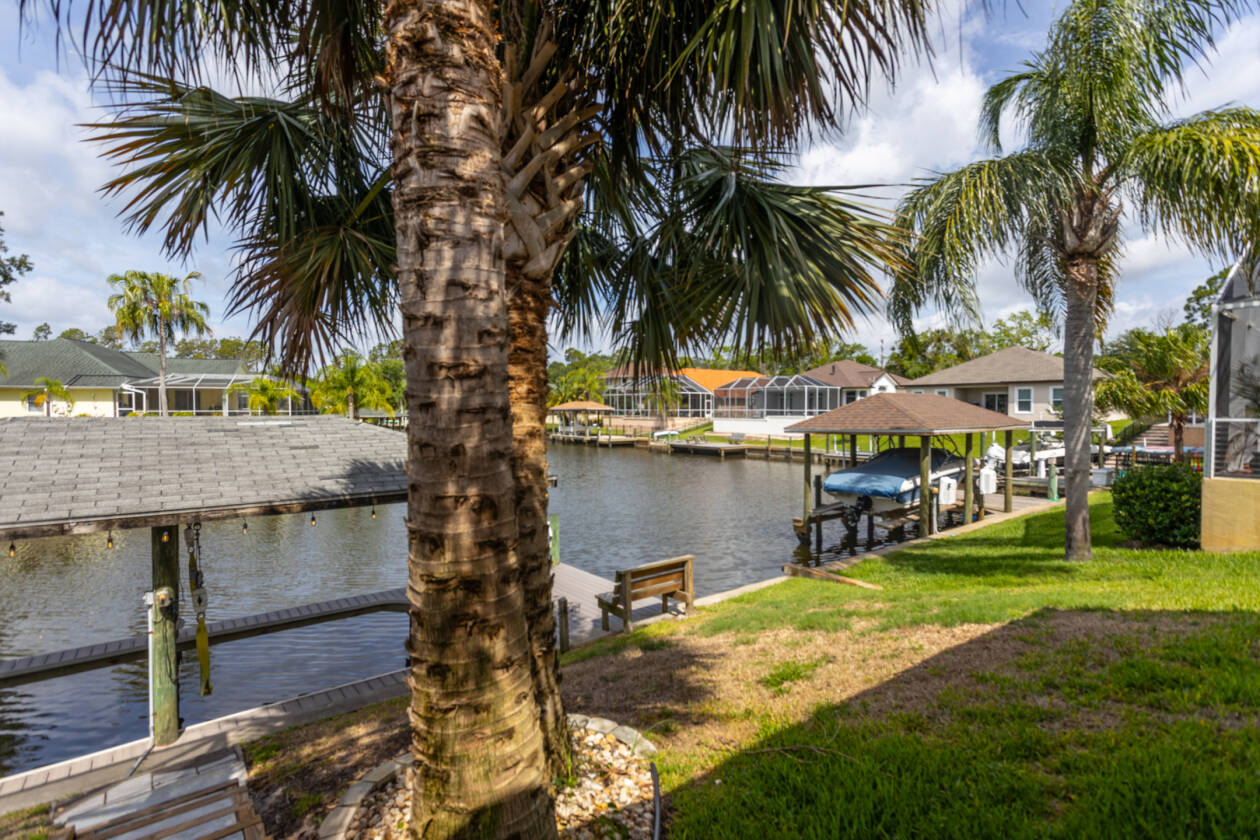 Tucked on a quiet cul-de-sac, on a peaceful saltwater canal, 6 Criston Court is the kind of home that feels like a gentle breeze. Thoughtfully and completely renovated in 2021, this wonderful home blends natural textures, soft colors, and relaxed elegance with modern comforts. From the moment you walk through the NEW front door, you’re greeted with a warm, airy vibe—rich wood-look flooring, and a wide-open floor plan that invites light and flow. Cozy nooks and open spaces come together making this home perfect for slow mornings, creative afternoons, and golden-hour dinners. The kitchen is pure charm and function—with a QUARTZ island made for gathering, soft-close cabinets, stylish tile and backsplash, and Samsung + Bosch appliances. Both remodeled bathrooms have stunning granite countertops, artisan tilework, and soft lighting. A redesigned front bedroom offers space and charm and a huge walk-in closet…big enough to be a small office. Ceiling fans and Levolor blinds enhance that cooling coastal airflow throughout the house. The major systems have been updated: NEW 3.5-ton A/C (2025) with transferable warranty, NEW irrigation well pump (2025), Upgraded electric panel. The Roof was replaced in 2017. Outside, you’ll find your backyard sanctuary: A Jacuzzi spa set beneath a breezy lanai with NEW composite decking, and sun-dappled lounging areas perfect for potted plants and fairy lights. There is also a private boat dock with NEW composite decking and a lift that holds up to 6000 lbs. Whether you're soaking in the spa, journaling by the window, or motoring from your own dock, this home radiates peace, creativity, and effortless style. This stylish updated home is situated in a small "hamlet", on a cul-de-sac road, bordering the marsh with a scenic nature walking path.