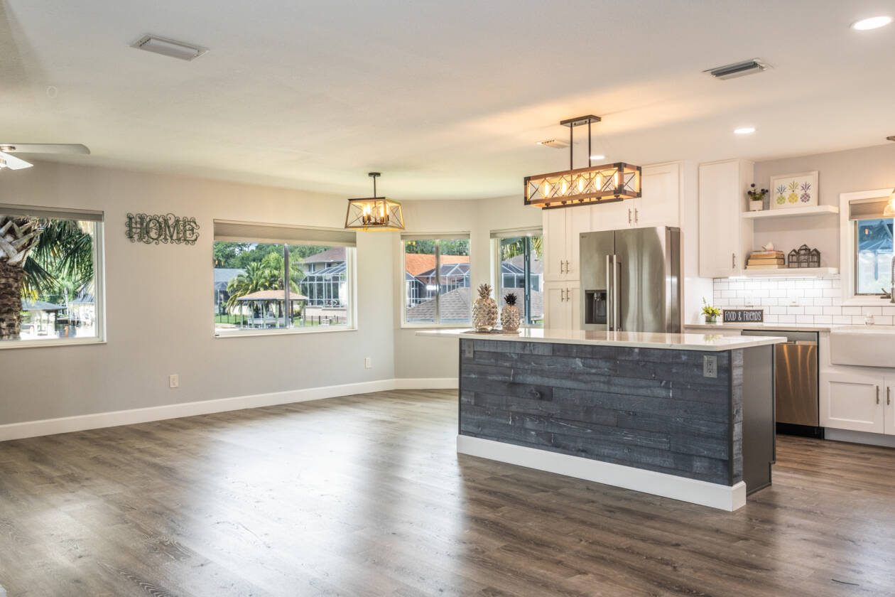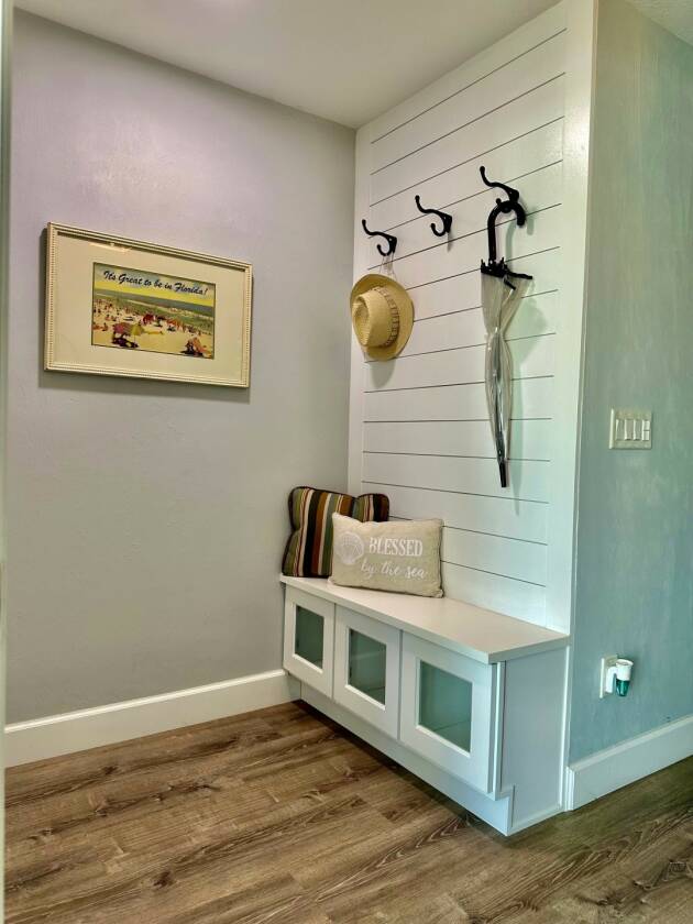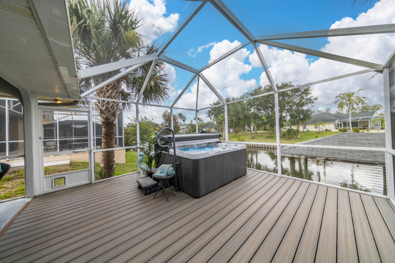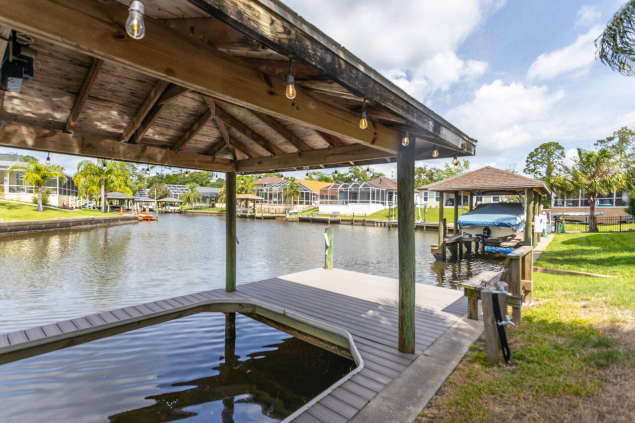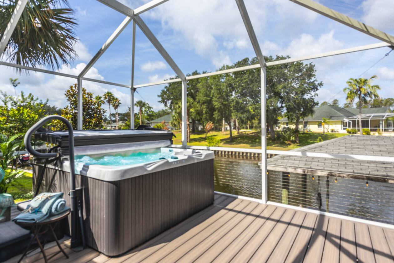 Tucked on a quiet cul-de-sac, on a peaceful saltwater canal, 6 Criston Court is the kind of home that feels like a gentle breeze. Thoughtfully and completely renovated in 2021, this wonderful home blends natural textures, soft colors, and relaxed elegance with modern comforts. From the moment you walk through the NEW front door, you’re greeted with a warm, airy vibe—rich wood-look flooring, and a wide-open floor plan that invites light and flow. Cozy nooks and open spaces come together making this home perfect for slow mornings, creative afternoons, and golden-hour dinners. The kitchen is pure charm and function—with a QUARTZ island made for gathering, soft-close cabinets, stylish tile and backsplash, and Samsung + Bosch appliances. Both remodeled bathrooms have stunning granite countertops, artisan tilework, and soft lighting. A redesigned front bedroom offers space and charm and a huge walk-in closet…big enough to be a small office. Ceiling fans and Levolor blinds enhance that cooling coastal airflow throughout the house. The major systems have been updated: NEW 3.5-ton A/C (2025) with transferable warranty, NEW irrigation well pump (2025), Upgraded electric panel. The Roof was replaced in 2017. Outside, you’ll find your backyard sanctuary: A Jacuzzi spa set beneath a breezy lanai with NEW composite decking, and sun-dappled lounging areas perfect for potted plants and fairy lights. There is also a private boat dock with NEW composite decking and a lift that holds up to 6000 lbs. Whether you're soaking in the spa, journaling by the window, or motoring from your own dock, this home radiates peace, creativity, and effortless style. This stylish updated home is situated in a small "hamlet", on a cul-de-sac road, bordering the marsh with a scenic nature walking path.