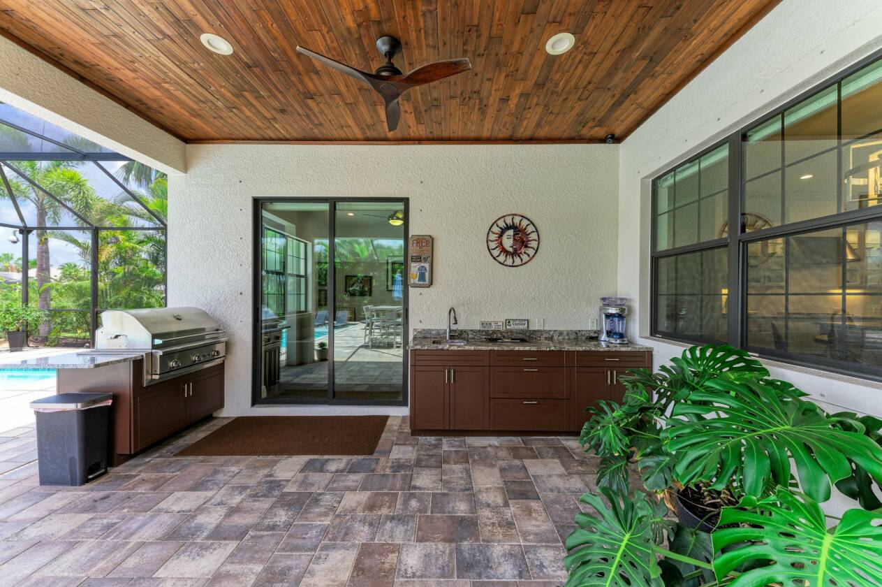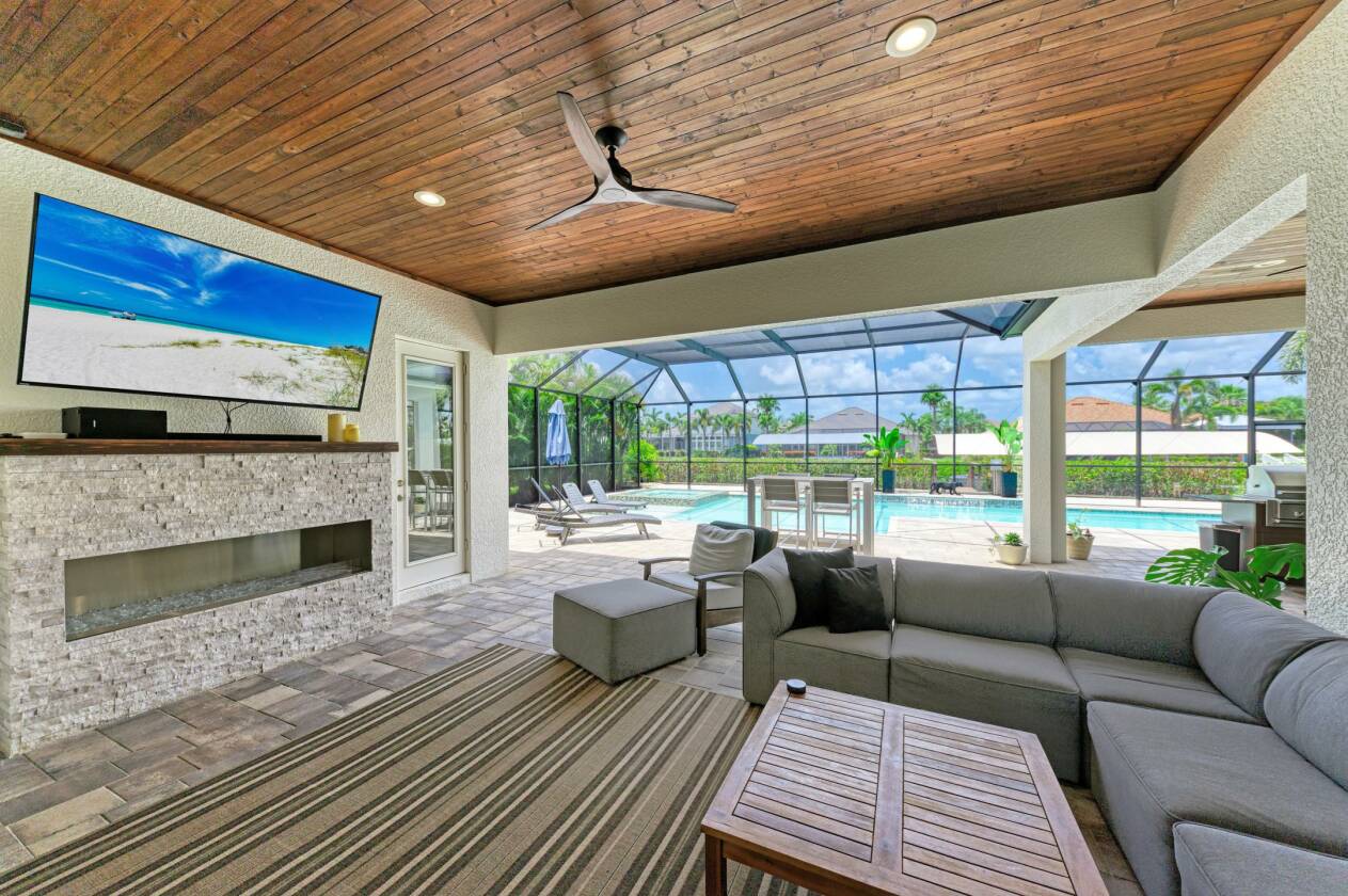 - Great room with 8’ triple pocketing sliders leading to the lanai