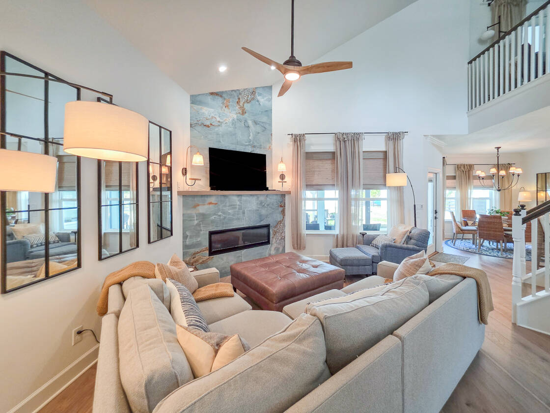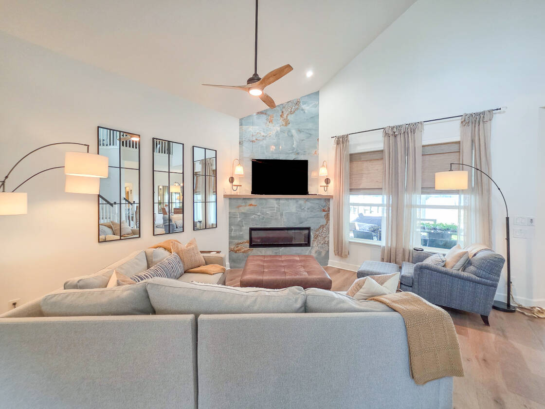 Welcome to The Lakehouse! Tucked away privately on the East side of George's Lake is a lakeside oasis that feels set apart from the world. Glistening waves stretch out under open skies and happy hour sunsets calm the senses and sooth the soul, while the surrounding woods create a natural backdrop for native wildlife like osprey, eagles, and deer to wander freely. The 3 bedroom/3.5 bath home was originally built in 2000 and has been completely gutted and rebuilt in 2023 with intention and heart, not just to live in, but to live fully. Timeless elegance and purposeful design can be found in every corner. Sunlight pours through the windows, framing amazing lake views and the quiet rhythm of living on the lake. The dining room is large enough to host holidays and laughter-filled dinners while the breakfast nook offers a more intimate setting. The living marble fireplace whispers of water lapping along the shoreline and welcomes you to warmth and coziness on cooler evenings while