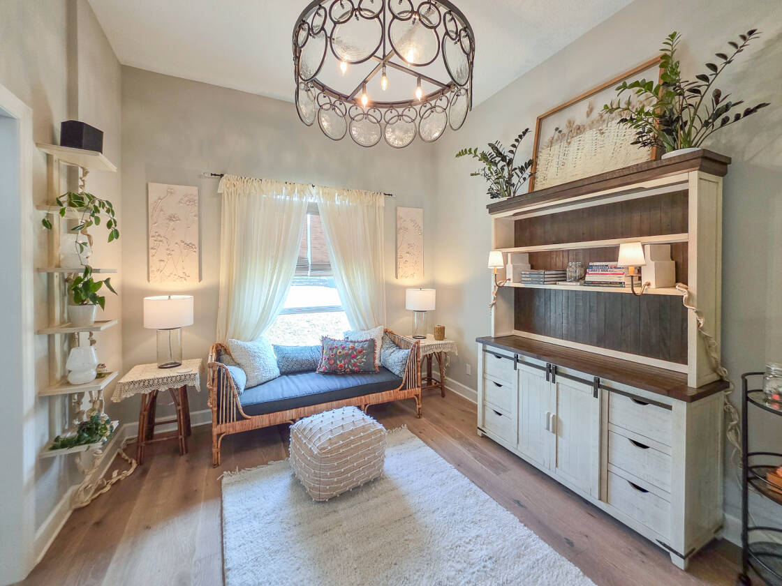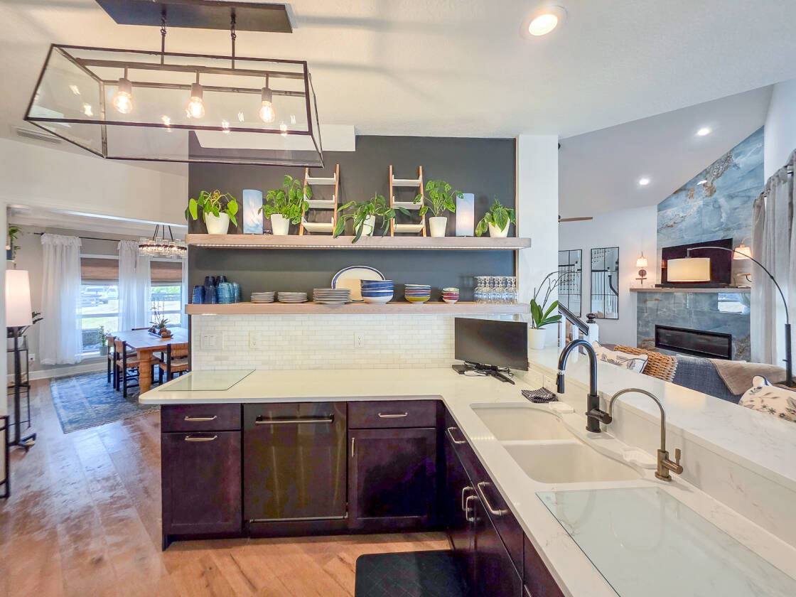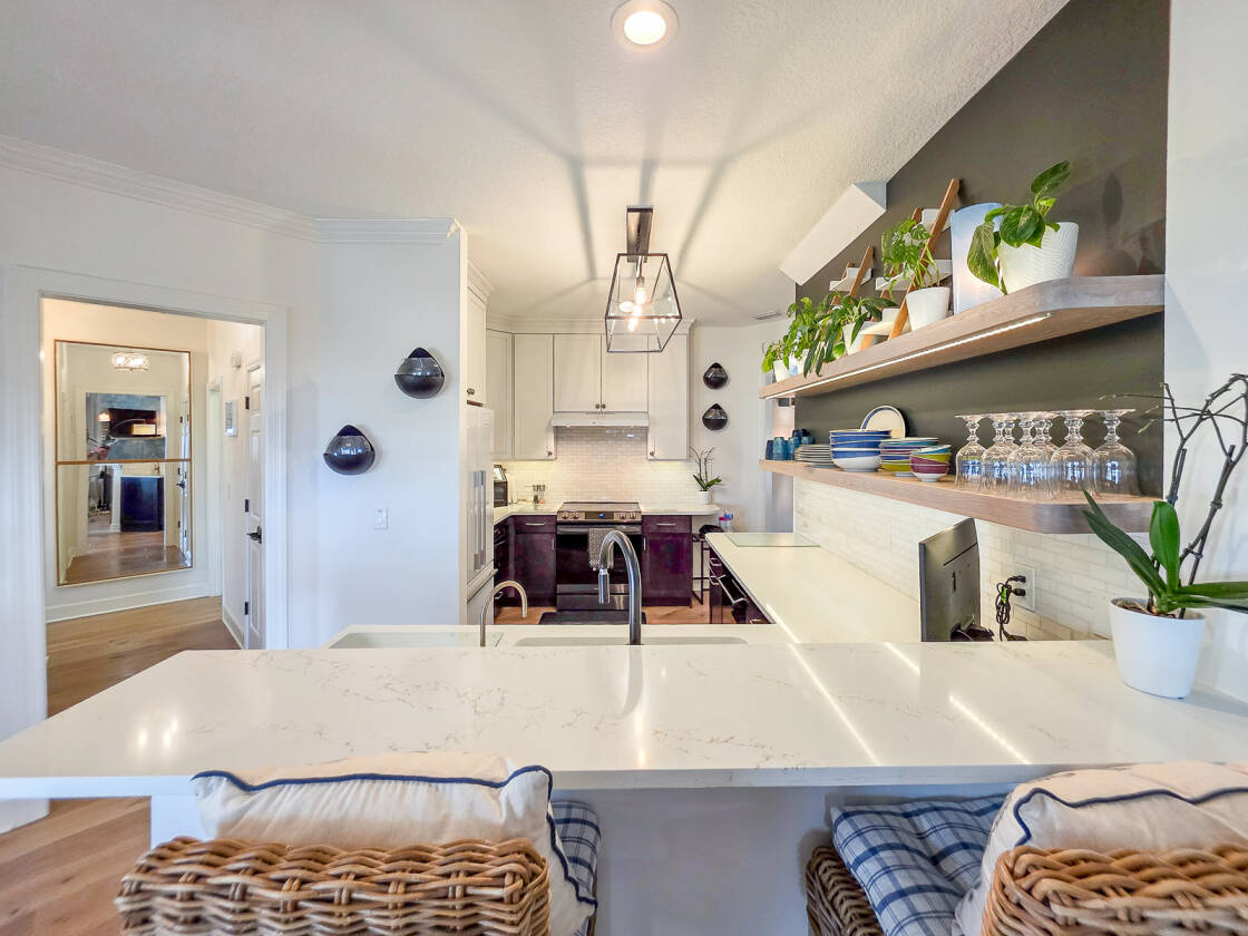 echoing the lake views through the windows. The enclosed back porch has witnessed countless sunsets, conversations, and celebrations.