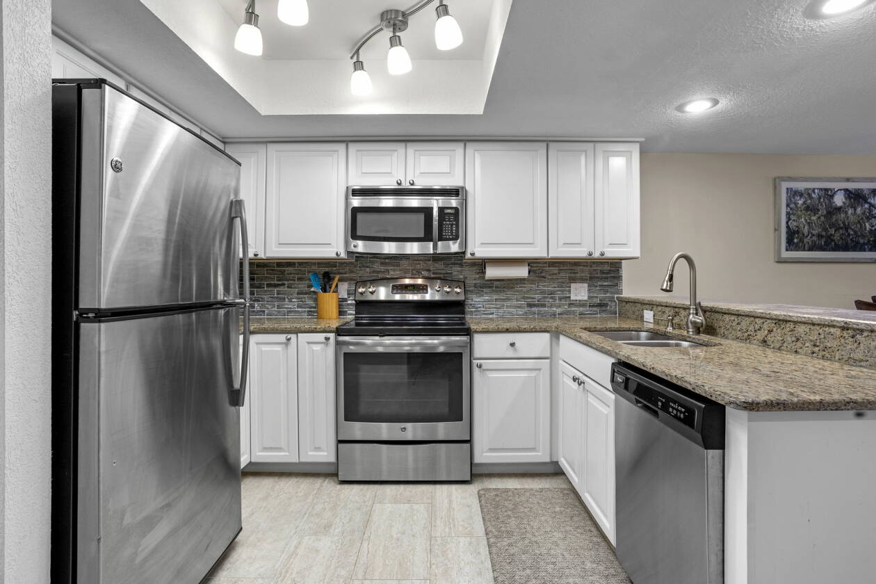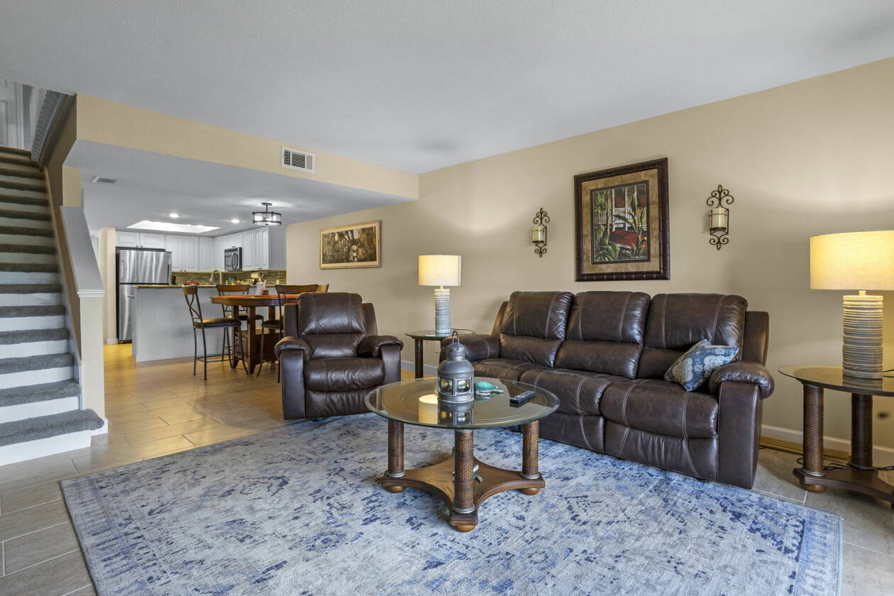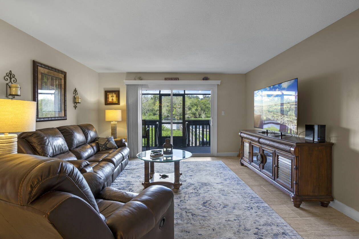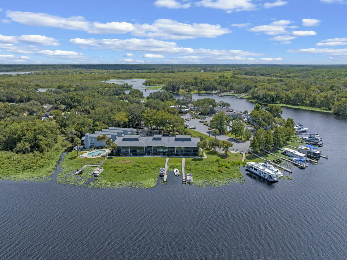 Imagine waking up each morning to the gentle call of the river, where the water mirrors the sunrise and life moves at a calmer, more rewarding pace. This beautifully updated 2-bedroom condo in the welcoming 55+ community of St. Johns River Club offers exactly that—an affordable way to embrace Florida’s waterfront lifestyle. With 1,365 square feet spread across two stories, this home balances comfort and practicality. Step inside and you’ll notice the thoughtful updates and inviting flow. The kitchen shines with granite countertops, stainless steel appliances, and abundant cabinetry—a perfect mix of style and function. The open dining and living areas provide a warm gathering space filled with natural light. Upstairs, both bedrooms feature new Anderson windows for energy efficiency and a fresh, modern touch. Each is a peaceful retreat with large closets and generous storage—something rarely found in condo living. The bathrooms have been tastefully updated, and the convenient half bath downstairs adds to everyday ease. This property comes furnished with essentials and includes peace-of-mind upgrades: a superb water treatment system, a six-year-old HVAC system serviced annually, plus a brand-new roof and gutters replaced in 2024.