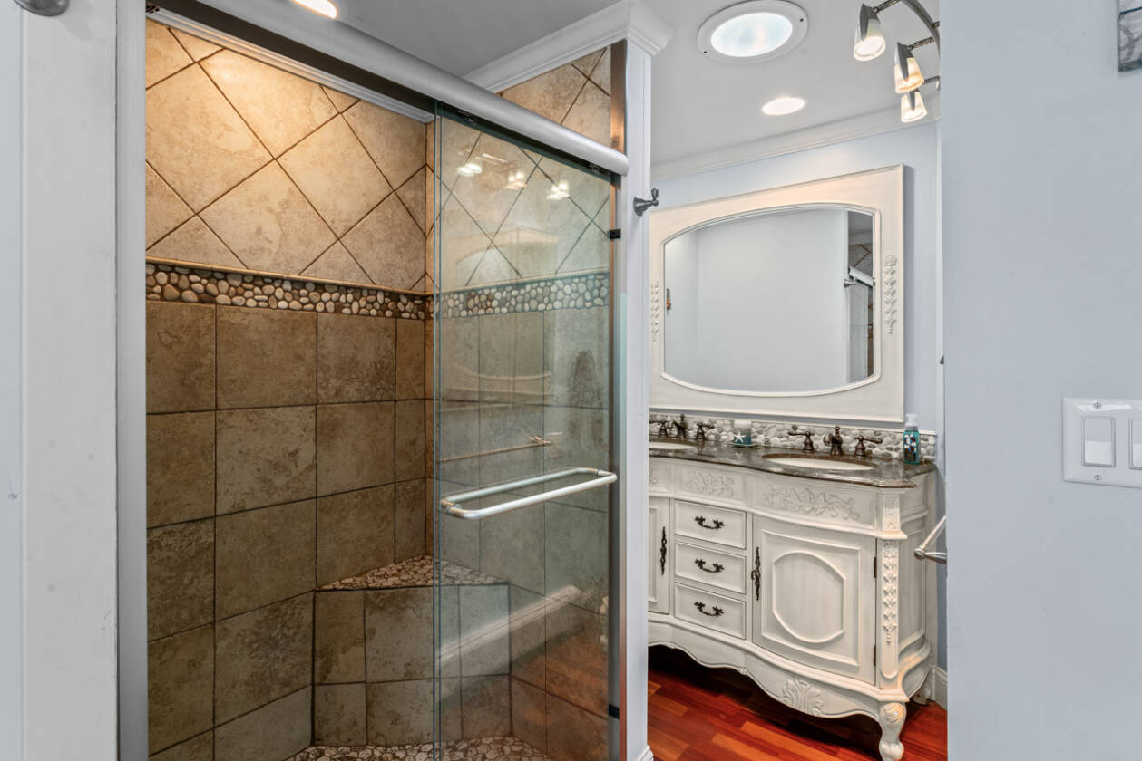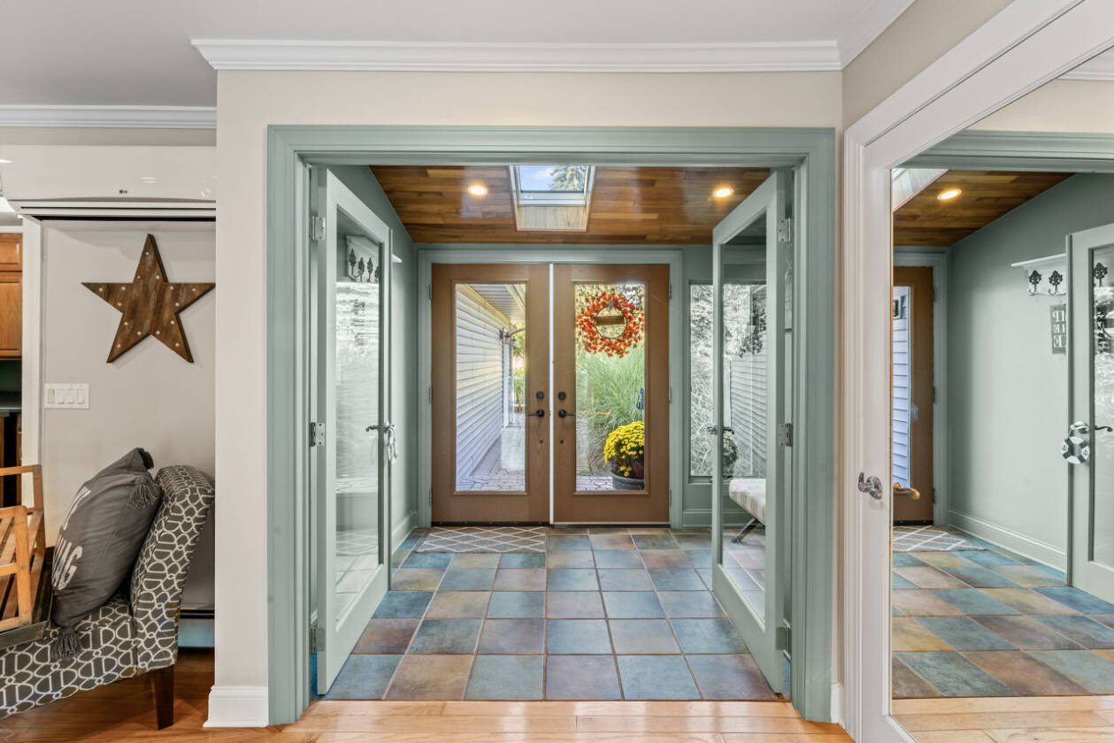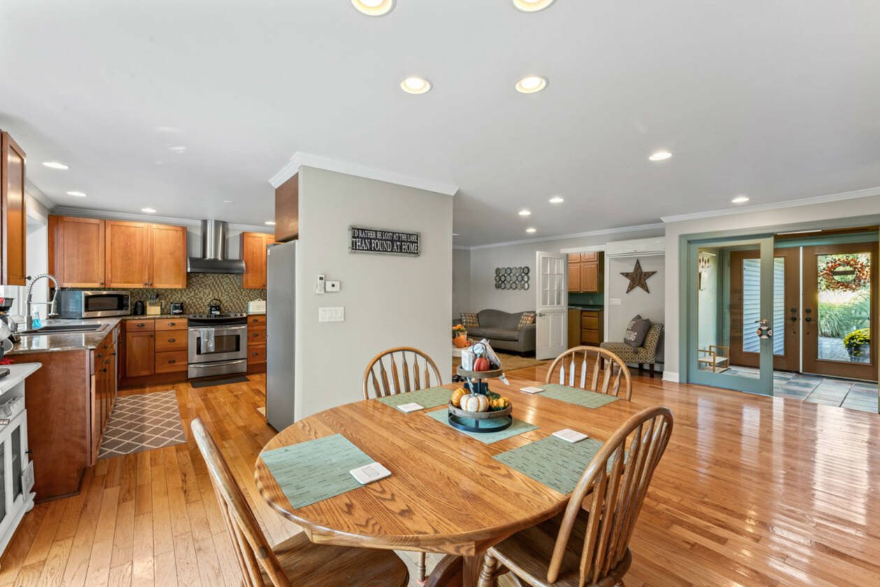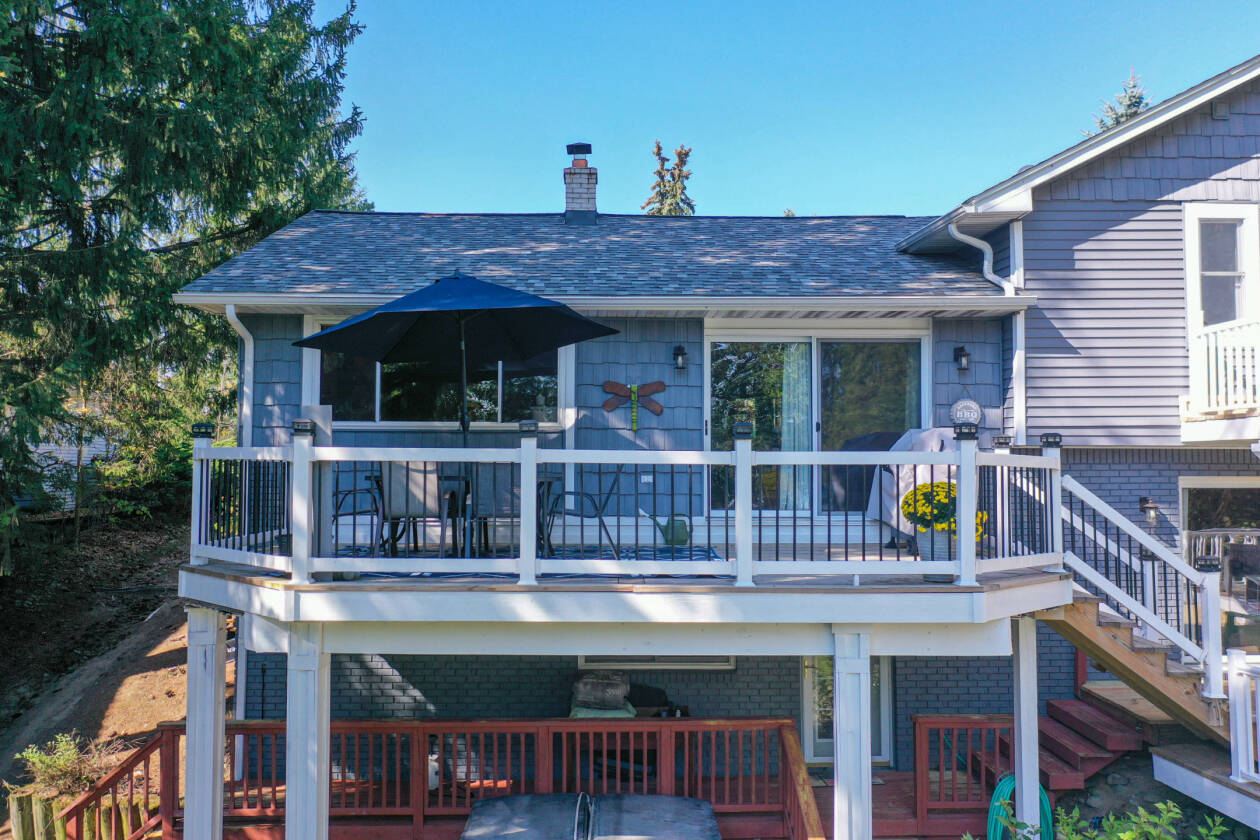 This is your perfect opportunity to snag yourself that waterfront home on private all sports Lake Shinanguag! Timing is key with enjoying the fall vibes and beautiful winter view all while making this home your own perfect entertaining oasis for the summer. Boasting over 2700 sq ft of finished space, this home offers panoramic lake views from all levels. The kitchen will not disappoint with many upgrades including top notch appliances, granite countertops and cherry cabinets; perfect for entertaining with its open concept to the dining and living room. The walkout basement ushers you out to one of 4 decks (3 of which were completely updated with new boards and railings), where you'll find a relaxing hot tub and your private 90 ft of water frontage. The basement also has an extra 5th bedroom or office space with its own private entrance. Updates include 1. New roof, gutters and sky light (2024) 2. New water softener (2024) 3. New boiler (2021) 4. New siding (2020) 5. Deck board and railing (2023-2025) 6. Split zone air conditioning/heat pump (2015) 7. New cement driveway (2019) 8. New well pump and tank (2024) 9. Sewer grinder pump for lower level bathroom (2024) and septic tank pumped (2024). So grab your family and move right in! This home is a must see and priced to sell. Located in the desirable Goodrich Community School District. Washer and Dryer not included in sale.
