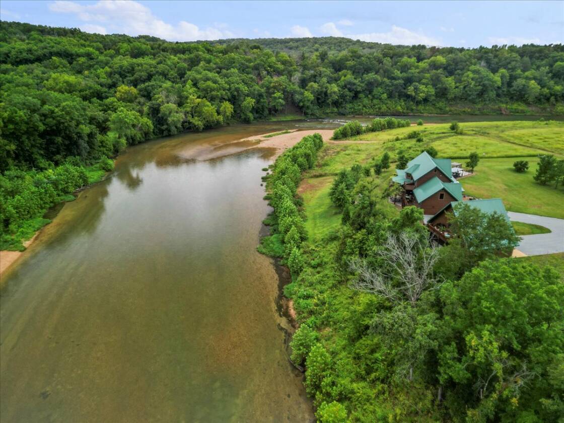 Set on 4.82 manicured acres spanning two lots, this property boasts unrivaled river frontage, panoramic views of the Ozark Hills, and a gently sloping yard for direct access to the water—ideal for fishing, kayaking, floating, or simply relaxing.