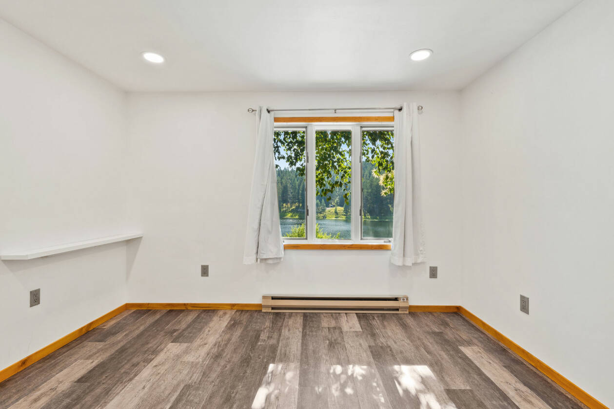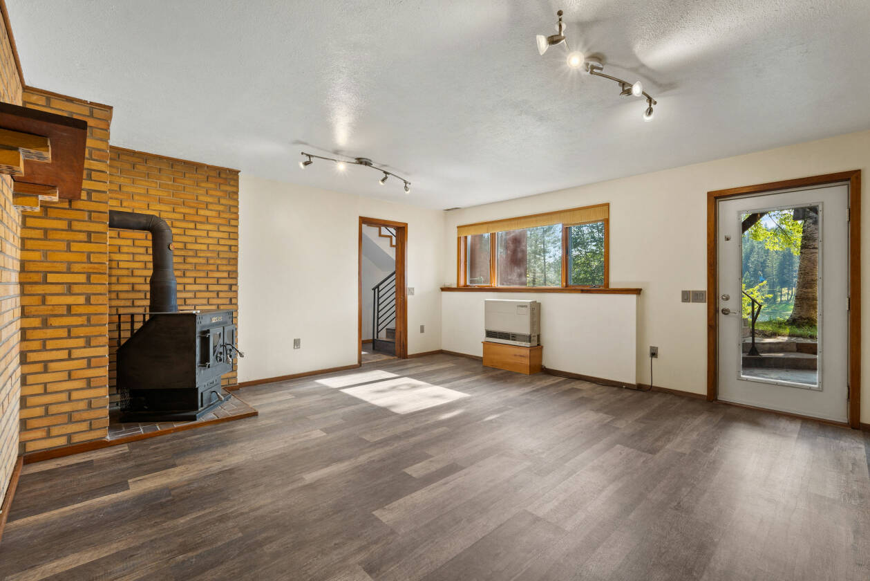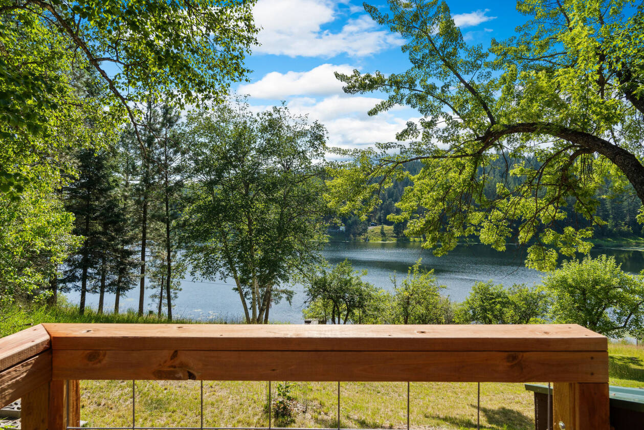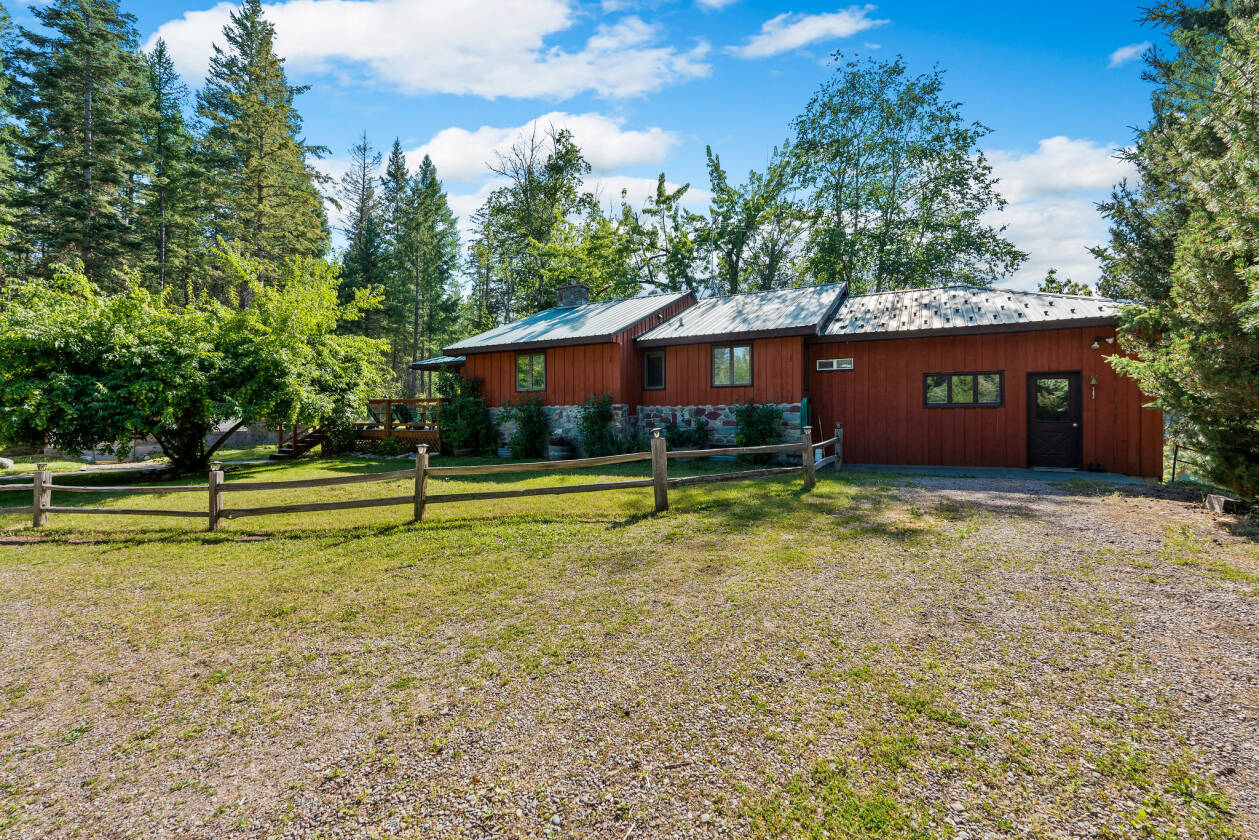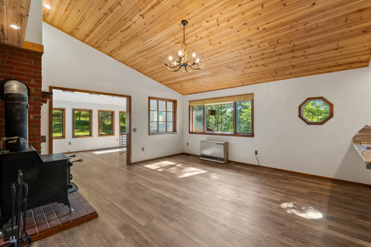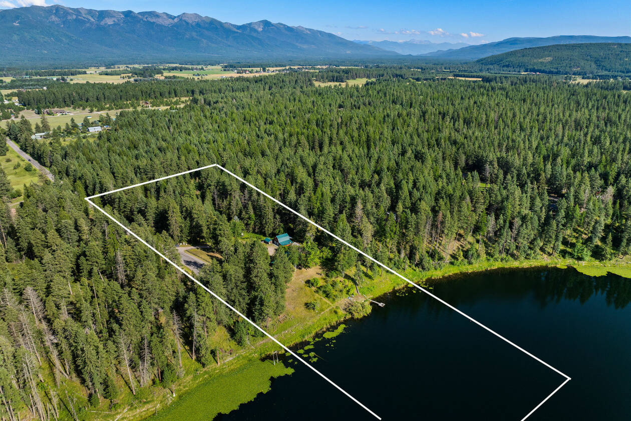 Rare Montana Lakefront Retreat! Discover an extraordinary opportunity to own a slice of paradise on the shores of McCaffery Lake. Set on over 9 beautifully landscaped, fenced acres with approximately 350 feet of private lake frontage, this well-maintained property offers breathtaking mountain views, abundant wildlife, and a lifestyle rich in peace, recreation, and flexibility—just minutes from the charming village of Bigfork. The thoughtfully designed 5-bedroom, 2-bathroom home features a bright, open layout with new LVP flooring (2018), a remodeled kitchen (2019) with stunning marble countertops and updated stainless steel appliances, dining area with tongue and groove ceiling, and a wood stove. The daylight walkout basement enjoys stunning lake views and provides flexible space ideal for guest quarters, multigenerational living, or a private retreat with another cozy wood stove.