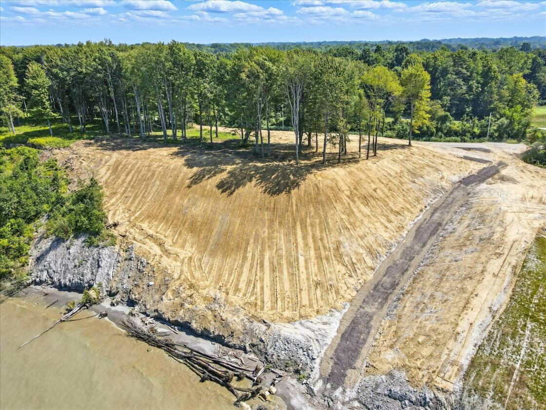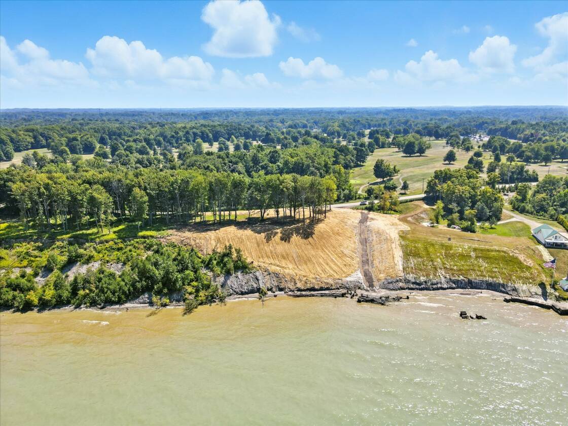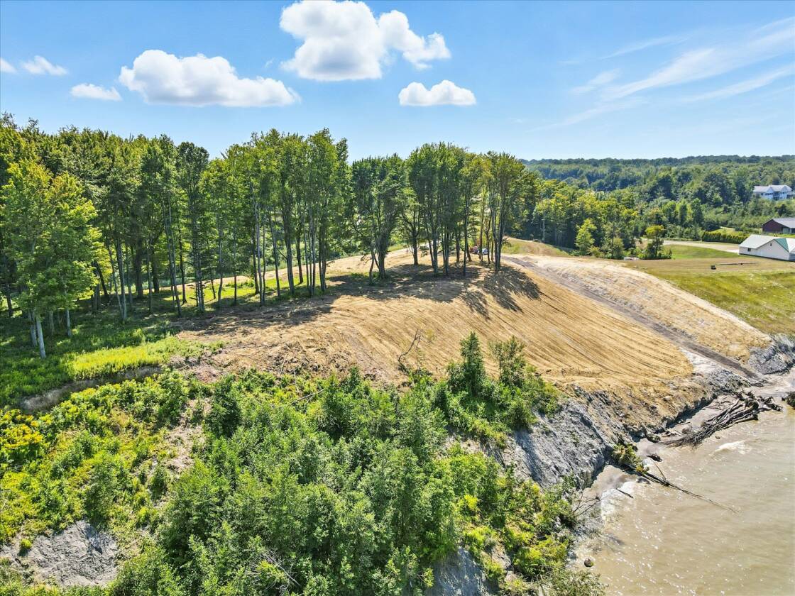 High above the shores of Lake Erie this absolutely remarkable 4.5 acre Lake Erie front building lot is one of the most unique Lakefront properties you'll ever find. With a driveway from the street that leads all the way to the Lake Erie shore you can literally put out your boat or jet ski from your own property while building atop the hill as you overlook Lake Erie on the north and Village Green Golf Course to the south. Bald Eagle perches abound on the property, there is a flat, prepared homesite ready to build upon, approved location for the septic system and driveway base in place. There is no hyperbole or sales fluff in this one - it TRULY is One-of-a-Kind!