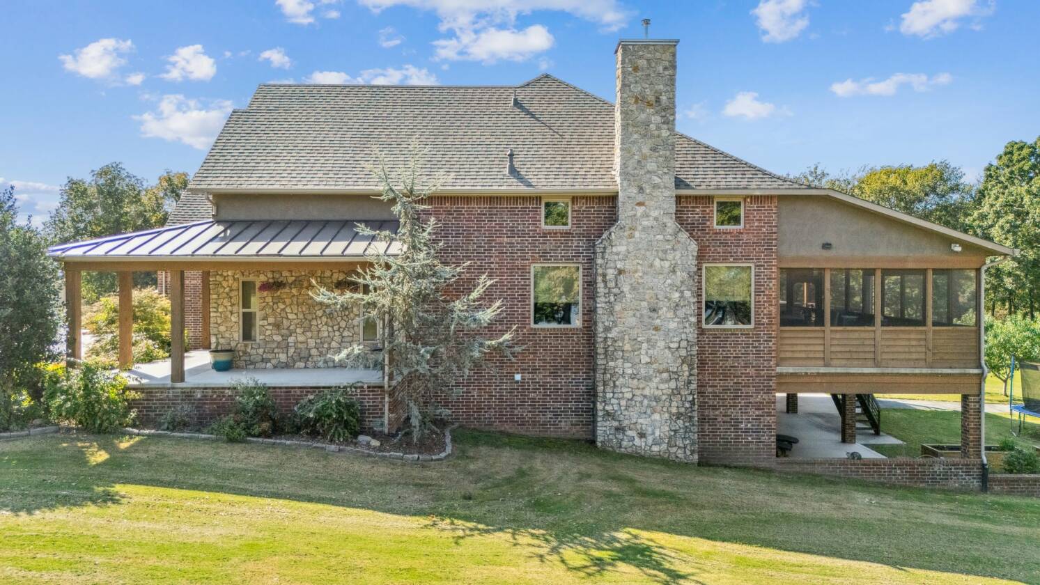 This custom-built home in the gated Sunset Shores community on Lake Hudson offers refined design and comfortable living. The open floor plan features 14-foot beamed ceilings, a gourmet kitchen with a butler’s pantry, and lake views throughout. Enjoy multiple covered porches, a screened-in patio, and outdoor spaces designed for relaxation. The lower level includes a full living area, kitchenette, workout/media room, and a secure 300± sq ft safe room. With upscale finishes, thoughtful details, and access to exceptional neighborhood amenities, this property is move-in ready and built for lake living at its finest.