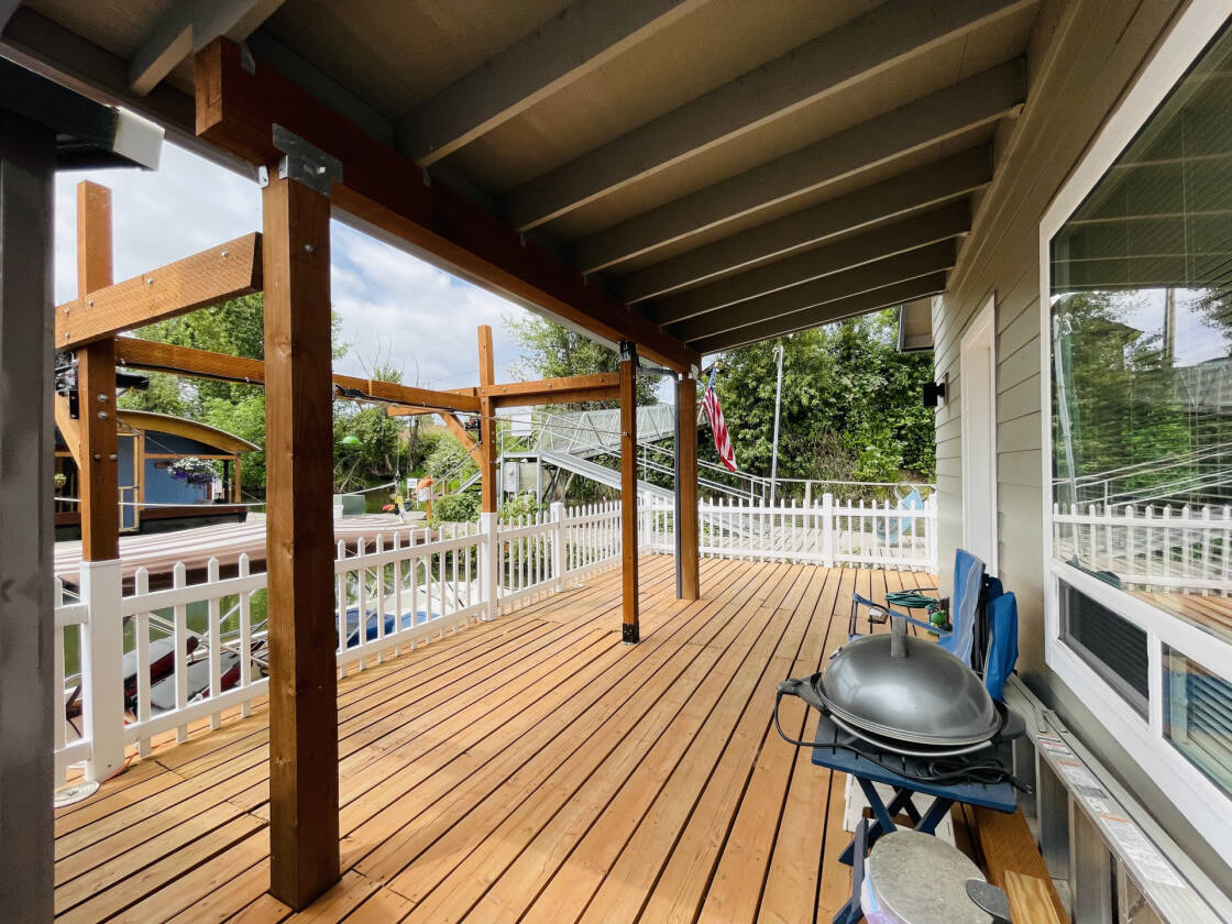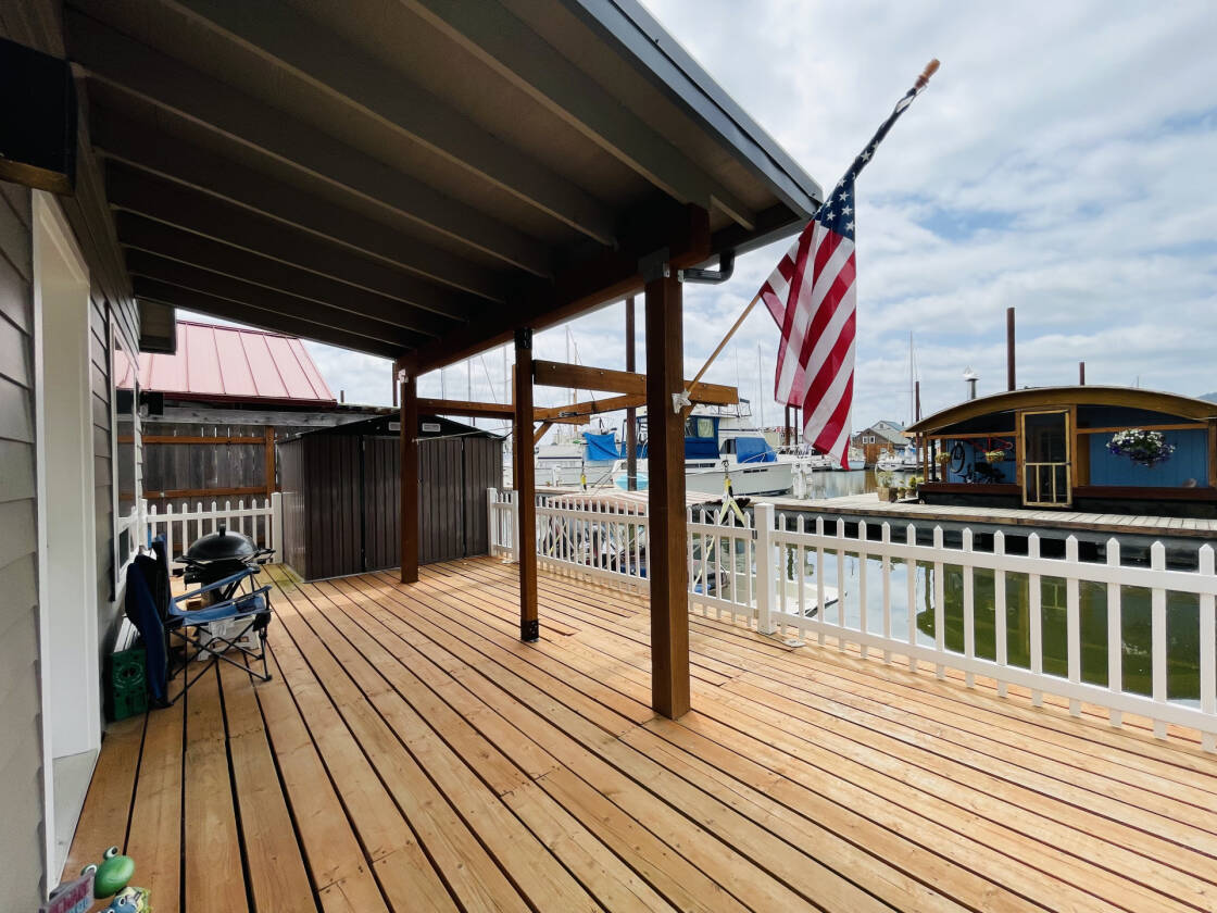 If you are looking for a fun place to retreat to after a long days work then look no further. This nearly new floating home practically takes care of itself so you have more time to enjoy being on the river. Metal roof and fiber cement siding for durability and endurability. Step inside to the luxury plank vinyl floors (feet wet from swimming? no problem) with warm tones and soaring ceiling with fan and mini split for A/C. The natural light that pours in from all the windows is glorious. The open concept ensures all parties are connected and contributes to the expansive feeling inside. The kitchen is well equipped with solid quartz countertops, contemporary white cabinetry, and a large pantry. The fun continues upstairs in the loft with dormer and storage closet for an extra sleeping area, office, or space for a fort! The deck has a lovely covered area, great for a bit of shade. It is fenced for fido and it features a sizable shed for your gear. Step off your deck right onto your boat! Why pay for boat moorage when you can keep it right off your own deck? This house is neat as a pin and ready for its new owner. Come enjoy all that the Multnomah Channel has to offer. Located in Columbia County (low taxes) in Scappoose, a thriving neighborhood. Gated parking and gated gangplank. Come see this house and leave time to try the new food carts at The Lodge. Vacation vibes daily!