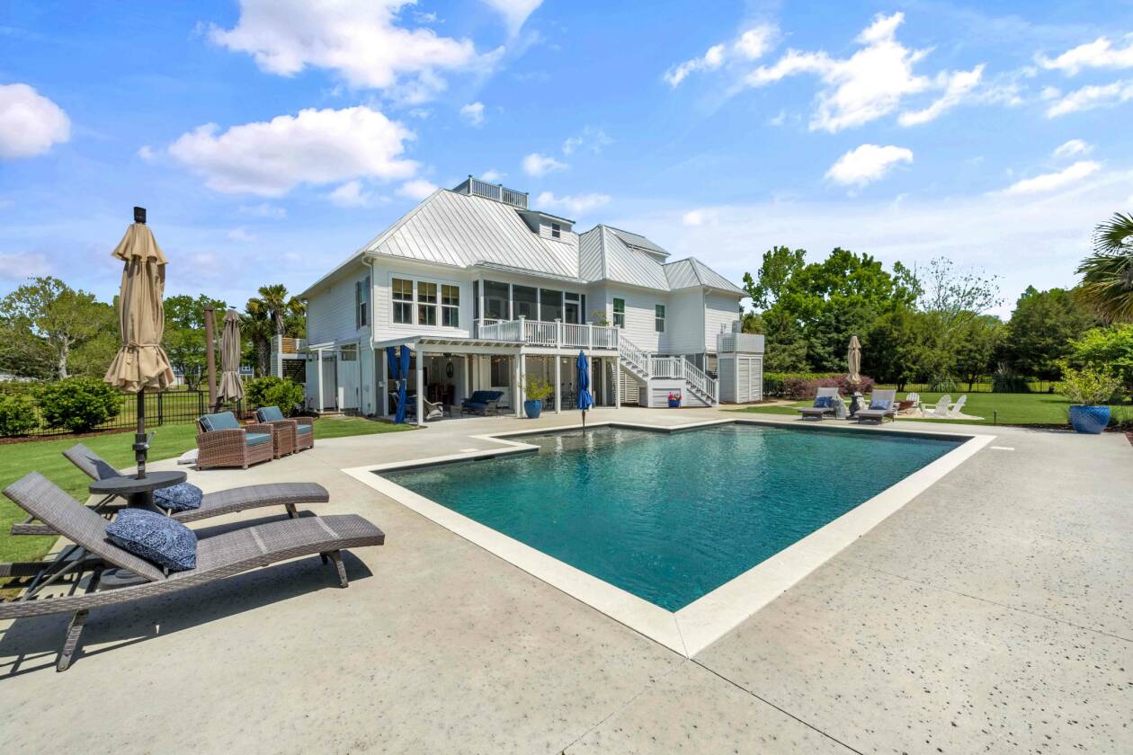 Nestled on 2.25 acres in the coveted waterfront community of Stono Pointe on Johns Island, this meticulously designed and updated residence blends Lowcountry charm with refined luxury. The neighborhood offers the exclusive lifestyle of a true coastal golf cart community, featuring a deep water dock with a covered pier head and ample floating dock space for the small enclave of homeowners, as well as a tennis court for recreation.