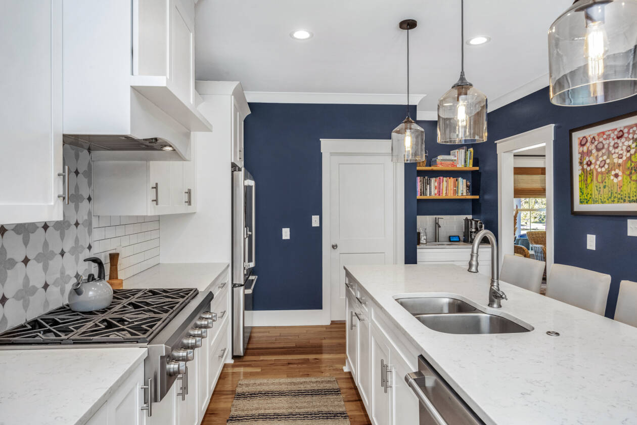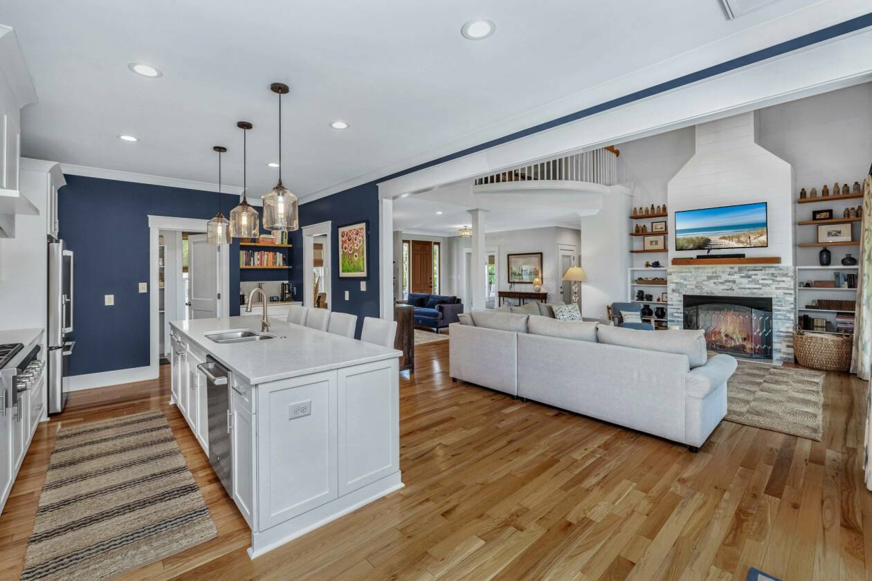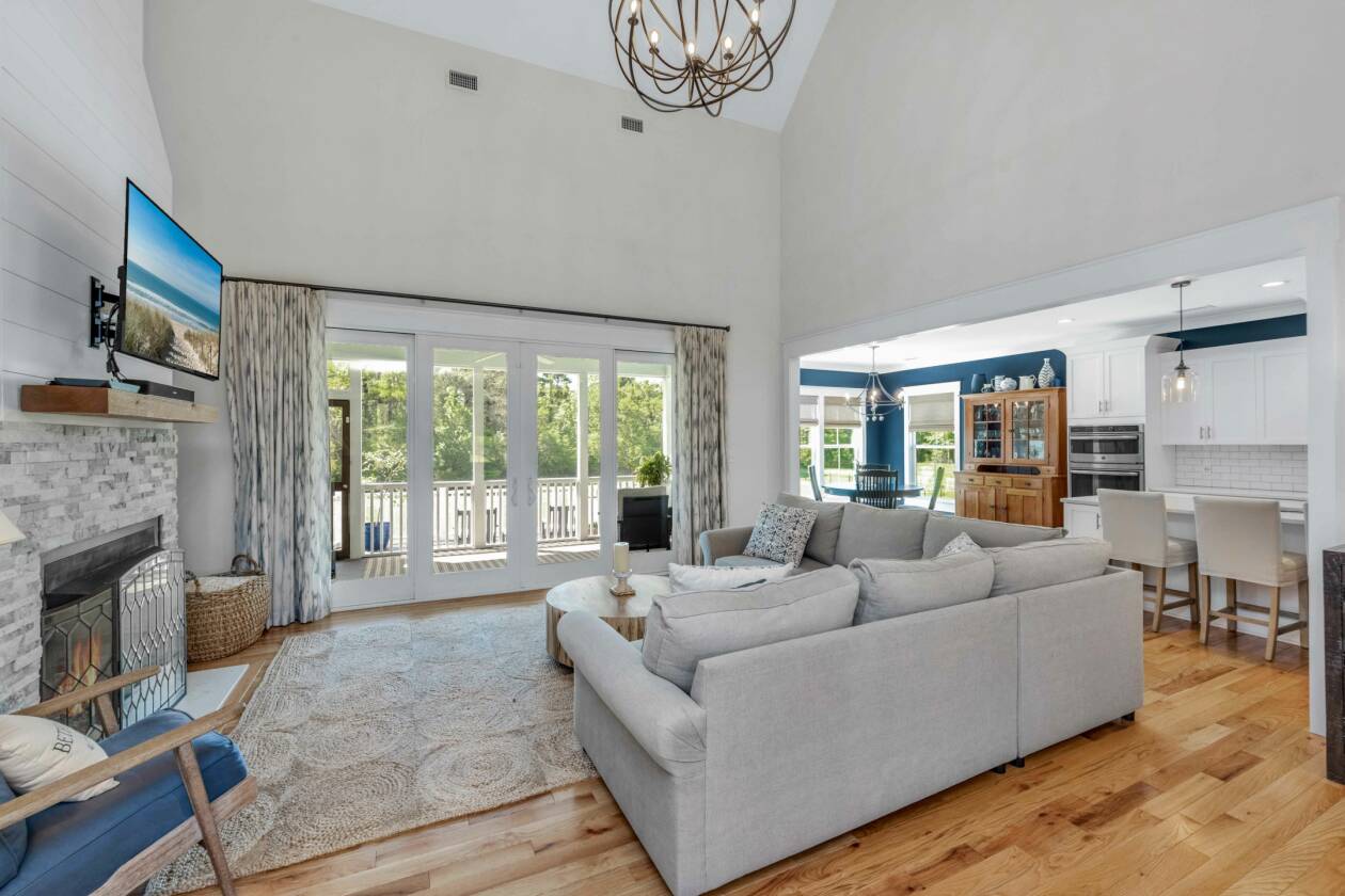 Step inside to find a home of immaculate design and finish, with hardwood flooring throughout, designer tile in bath and utility spaces, and beautiful shiplap details. Natural light fills the vaulted main living area, which features a gas fireplace, custom built-ins, and seamless porch access. The formal living room, just off the foyer, sets a gracious tone for guests if you are not enjoying the full front porch, back porch, or pool area.