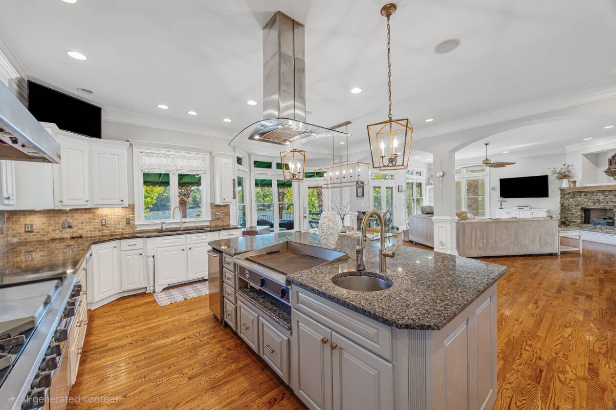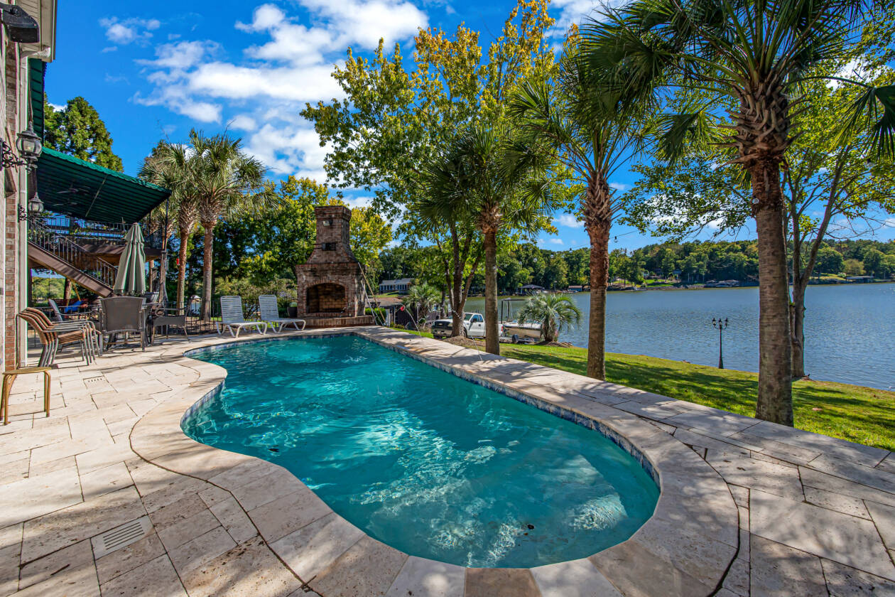 Unique custom-built waterfront home on Lake Wylie. Perfect for a large family or anyone who loves to entertain! Beautiful lakes views throughout the entire home. Enjoy your (2) private docks, one with a boat lift, your own private boat ramp to launch into the lake and enjoy anytime. The boathouse has plenty of room with its own kitchen for those fun days out on the lake. The main home provides an open great room with fireplace, full gourmet kitchen, commercial grade stainless appliances and hibachi stove top, wet bar, and walk-in butler's pantry leading to the large Trek deck overlooking the lake. The large open-airy primary bedroom provides amazing natural light from the skylights to the balcony overlooking the lake, dual walk-in closets, fireplace and your private sitting room and wet bar area. The walk-out finished basement with separate bedroom and full bathroom leads out to a private brick patio overlooking the lake. The separate living quarter/apartment area attached to main home includes a private entrance, large living area, bedroom, bathroom and full kitchen perfect for guests or an in-law suite. The extended wing that is also connected to the main home also with a separate entrance has a beautiful custom library/office with fireplace that overlooks another great room with beautiful lake views. The wing also has a beautiful full kitchen, separate bathroom w/sauna that leads to the Gunite pool/outdoor kitchen and fireplace. The gathering/lounge room leads to a private theater room perfect for cold/rainy days. There are several garages, one connected to the main home with built-in cabinets can easily fit several cars and/or toys. The large, attached garage(s) to the wing has an area large enough to pull your RV/Camper, that is wired for 50 AMP has plenty of room several vehicles, hobbies and work.