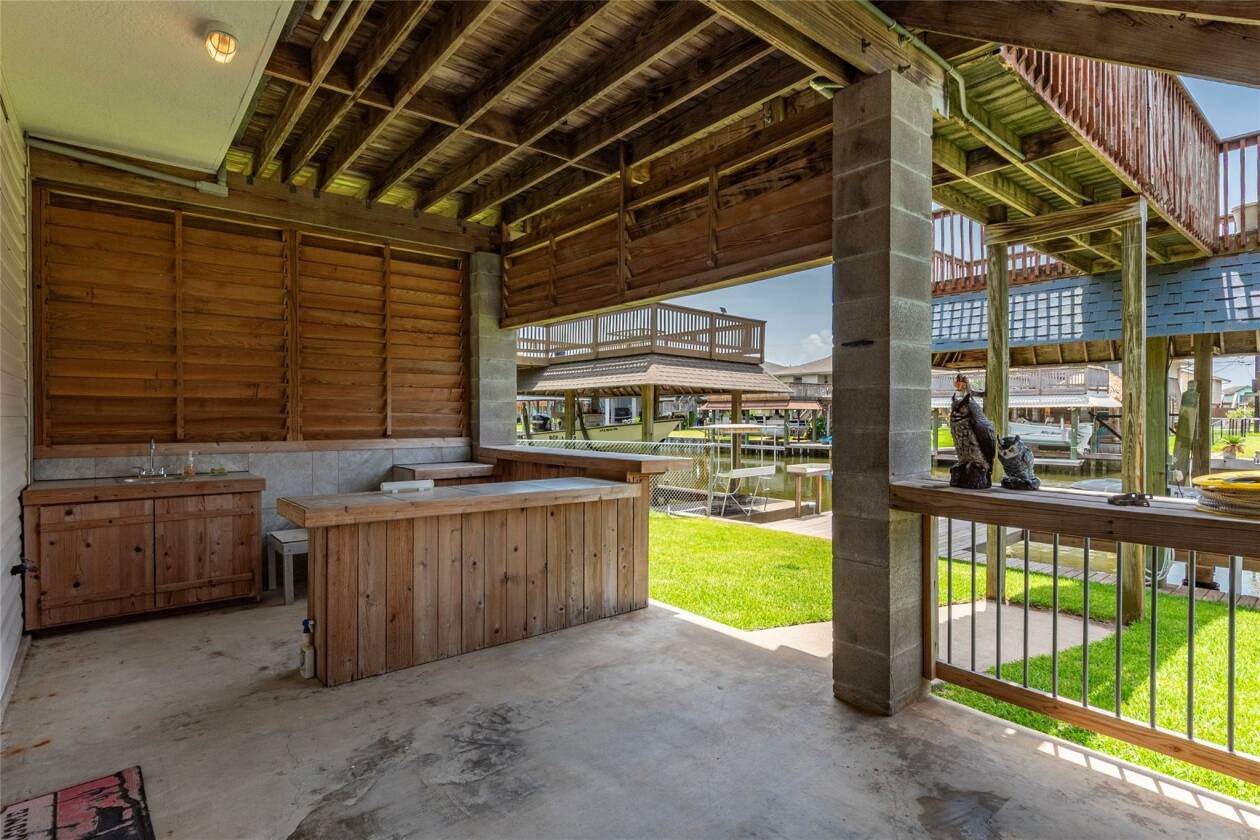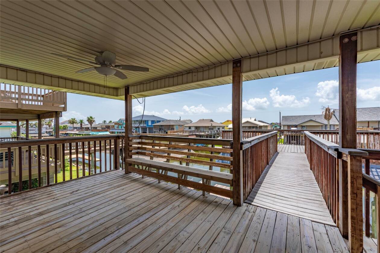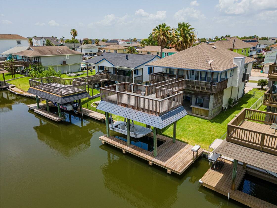 Amazing 2-2-1 Canal Front Home in Beautiful Bayou Vista built in 2000. Bulkhead replaced with vinyl bulkhead and deck around boat slip replaced in 2025 for $21,000(per seller). Boat House, Party Deck, Catwalk and handrails are covered with Trex. If you like windows and an open living area this home is the one. Three bay windows. One in the living room and 2 in the breakfast room. Open Living, breakfast room and kitchen. The kitchen has a large breakfast bar, beautiful Oak cabinets and Swanstone countertops. The living room and primary bathroom have high ceilings. Gorgeous electric fireplace. The primary bathroom has a large walk-in shower. A bonus room downstairs with a half bath. Small workshop downstairs. Laundy room is in the home. Great bar downstairs. Fenced back yard. Double gate on both sides of the home. 220 power in the garage. Fish and crab from your own fishing pier. Relax and enjoy the cool breezes on your covered deck and breezeway. All measurements are approximate.