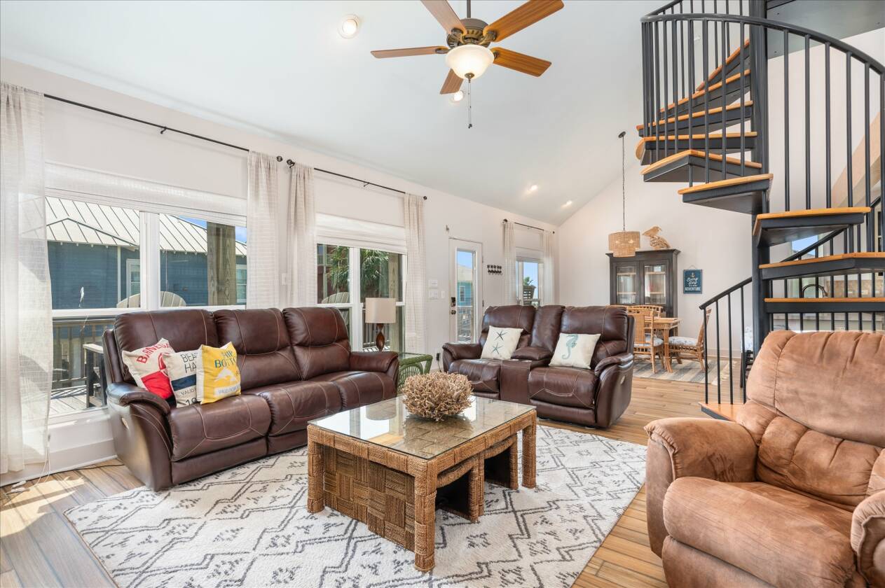 Experience coastal living in this 3rd Row 4 bed, 2.5 bath home in sought-after Ramada Beach. Fenced yard, fire pit, tiki bar, and ample outdoor furniture for beach entertaining. Primary bed with en suite bath on 1st floor, kitchen with counter seating and full dining room. Three additional bedrooms upstairs with tub shower combo bath. Electric storm shutters and cargo lift for convenience. Covered deck with furniture and observation deck. Fully furnished for vacation getaway or rental. Listed for sale with 4 beds, 2 baths, 1700 sq ft, and built in 2010. Lot size 5600 sq ft. Storage galore, A/C units replaced, furnished with minor exclusions.