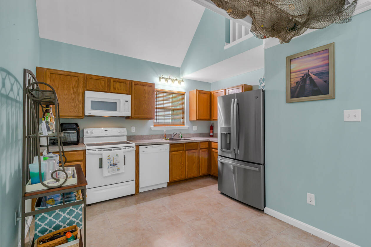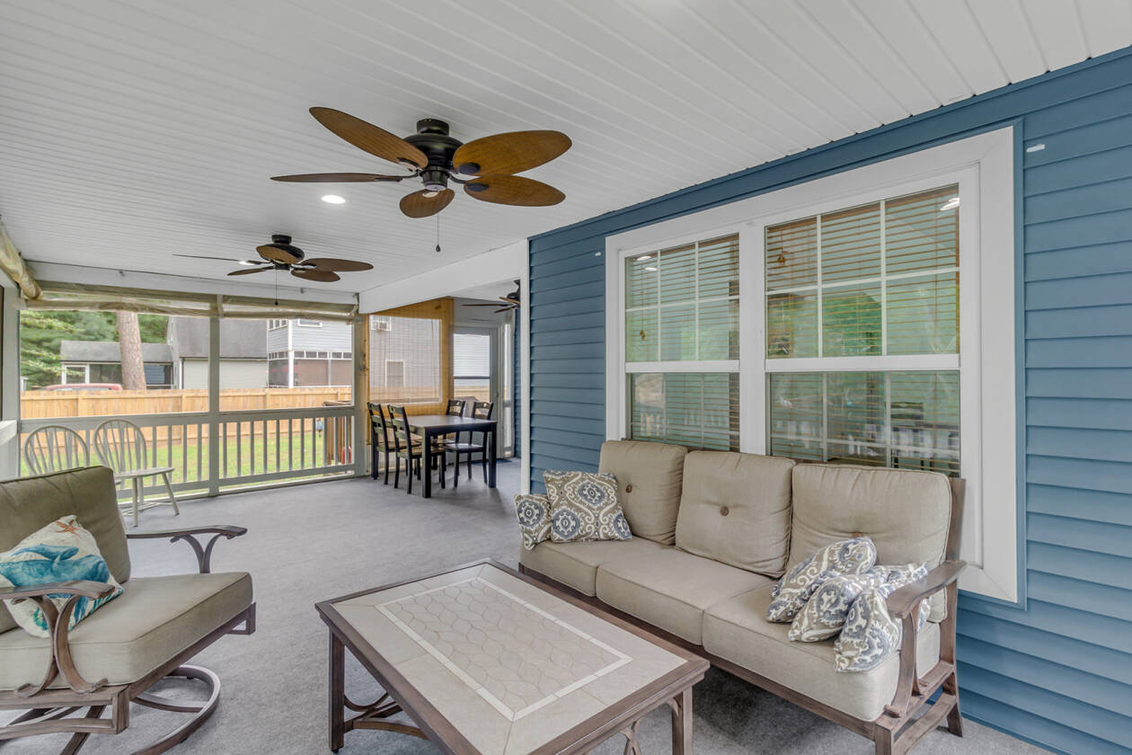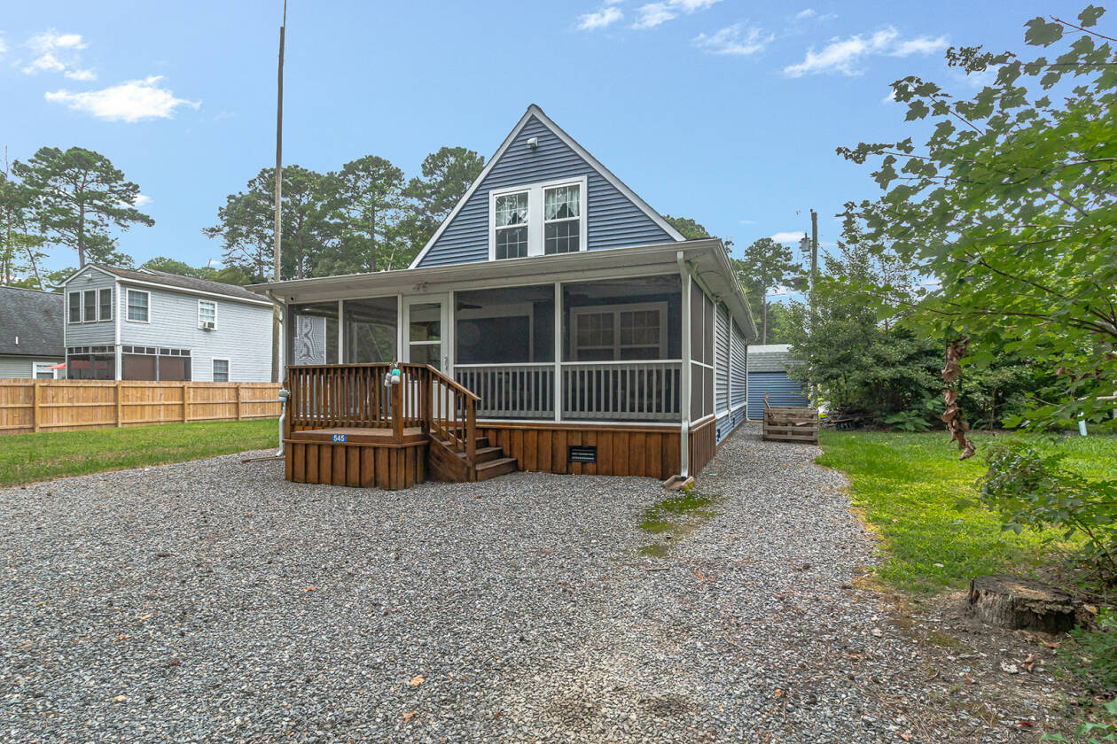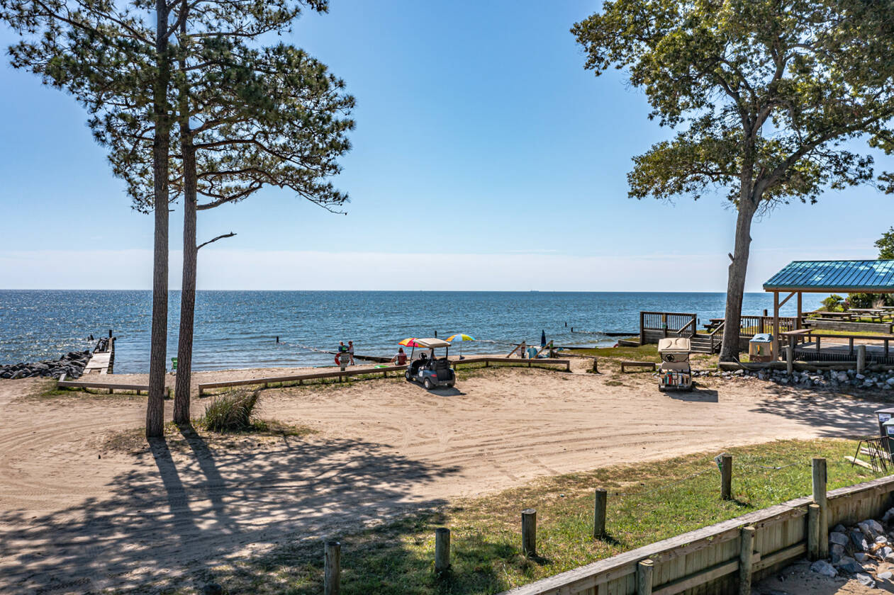 Enjoy the coastal lifestyle with this charming two-story home, offering direct access to a beautiful sand beach. The thoughtfully designed layout includes a large screen porch to relax and enjoy morning coffee. The living room boasts vaulted ceilings, enhancing the open/airy feel. This property is ideal for beach lovers seeking easy and effortless access to sun, sand, and Bay breeze, which is all just a short golf cart ride away. Perfect for family retreats, getaways or everyday living.