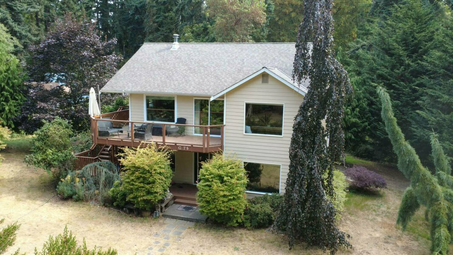 Stunning view home on South facing lot. Upper deck wraps around two sides. Views from most rooms. Wood stove in living room. Kitchen has large counters and cabinet space. Tiled main bath with separate shower.Quality furnishings throughout! Located in private island community five miles West of Everett. Ready to move in to, most furnishings stay.