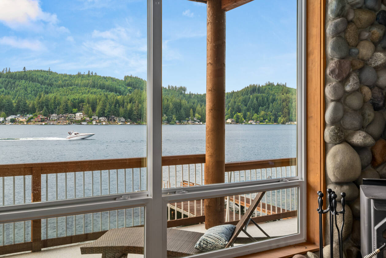 An exceptional Summit Lake home with 100ft low bank waterfront & unbeatable western exposure—FULL day summer sun & stunning year-round sunsets. Outdoor amenities are unrivaled w/ 3 docks & 2 BOATHOUSES, both w/automatic track systems. The Great Room features warm pine floors, natural wood trim & 10' ceilings. The spacious eat-in kitchen includes stainless steel appliances & ample storage. The 3rd floor vaulted primary suite features a spacious en-suite, walk-in closet, an office nook & lakeview balcony. The lower level offers 2 add'l BRs, a large full bath, & seamless lake access. Fully fenced with a massive side deck —perfect outdoor entertaining. Make this extraordinary waterfront retreat your forever getaway.
