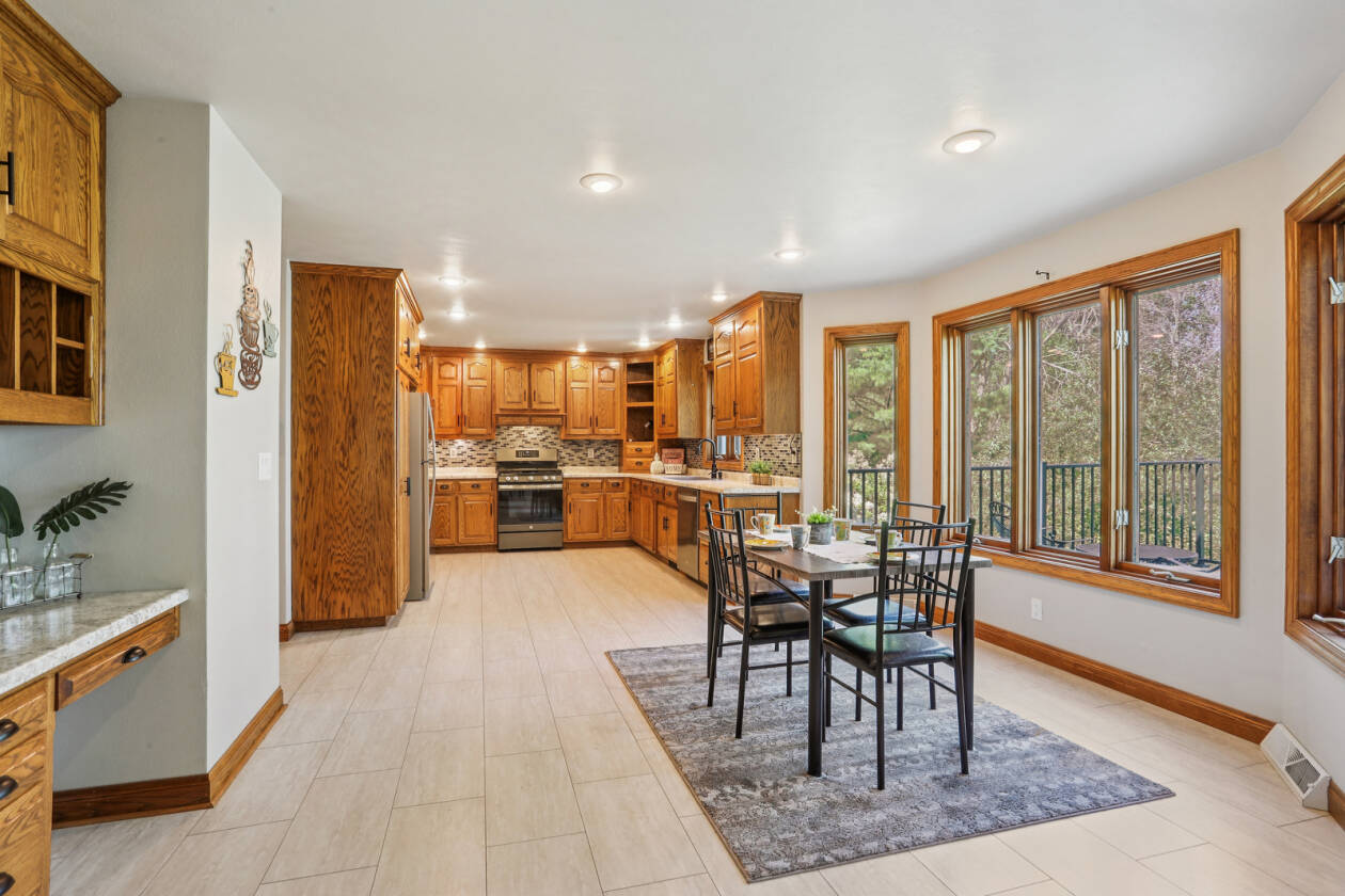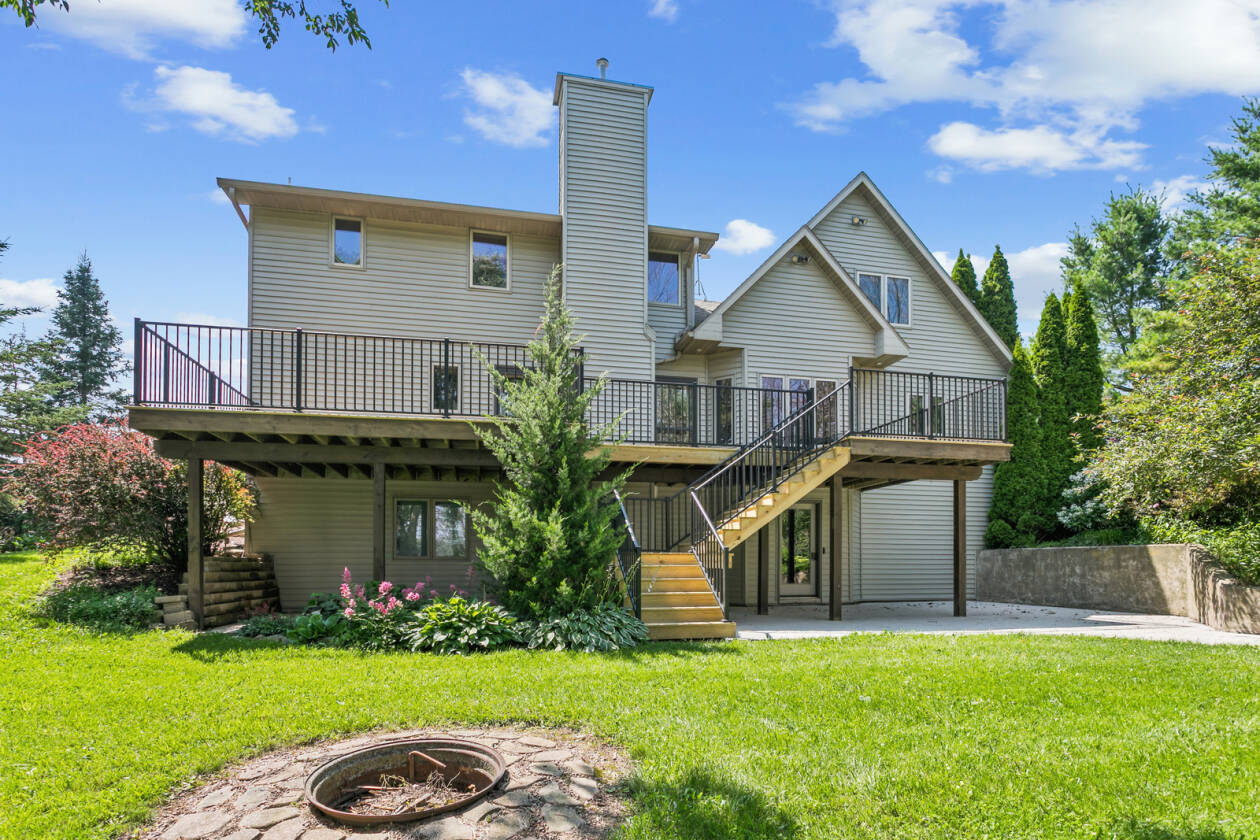 WATERFRONT w/a HUGE extra garage & long list of updates done! Relax on 3.1 acres w/120' frontage on Bullhead Lake, a no-wake lake w/67-acres & known for walleyes, panfish & perch! Walk-out, 2-story w/over 3400SF of living, has awesome features you will want in a waterfront escape! Large 2-story foyer, spacious living rm w/stone-gas fireplace, dining are w/bump out, very spacious kitchen w/SS appliances & floor-ceiling cabinets. Half bath & 1st-floor laundry rm by the ball hall to heated & insulated over 2.5 car garage. 1st-floor PRIMARY suite w/walk-in closet & full bath. 3 more BRs up PLUS-32x13 bonus rm above garage. Zoned heating! Fin & walkout LL w/rec rm & full bath. AWESOME 45x42 Cleary bldg w/12' side walls & 4 doors. PRE-CERTIFIED & great updates!
