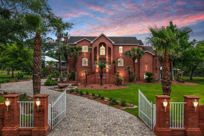 Welcome to this Exquisite three-story brick estate nestled in the bend of Fish River, offering the perfect blend of timeless architecture and modern luxury. NO HOA!! Surrounded by lush tropical landscaping and mature trees, this stunning residence boasts Panoramic Water Views, a private dock with boat lift, and multiple outdoor entertainment spaces that evoke a private resort experience. From the gravel road, the gate opens and you pull up to the home on a paver driveway; get out of your car and walk up the beautiful brick stairs that leads to the decorative glass front door that welcomes you into a warm and welcoming home. Your eyes will immediately go to the high ceilings and then to the gorgeous view of the River. 3 BR 3.5 BT, each floor has its own bedroom and living/entertainment area. A 4th bedroom could easily be added. Newly Luxury vinyl plank floors installed, pre wired for a generator, deck was replaced in 2024, 10k pound boat lift. Double garage, large enough for up to 3 cars. Step inside to discover expansive balconies, large windows that flood the interior with natural light, and elegant finishes throughout. The outdoor spaces are a true showstopper—featuring a spacious multi-level patio, a charming tiki hut with thatched roofing, and a covered outdoor lounge perfect for relaxing or entertaining. Whether you’re enjoying morning coffee on your private balcony, hosting guests by the water, or setting off on a sunset cruise from your dock, this one-of-a-kind home offers the lifestyle of your dreams. Features: • 3 stories of elevated living space • Private boat dock & lift with direct water access • Lush tropical landscaping with mature palm trees • Expansive brick patio with tiki hut and outdoor seating • Multiple balconies with water and garden views • Covered lounge and entertainment area • Tranquil location with ultimate privacy. Live every day like a vacation in this exceptional waterfront gem!