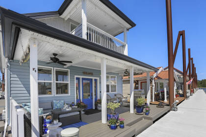 One-of-a-kind custom designed home with no expense spared! This fabulous floating home will not disappoint with quality craftsmanship, custom finishes, & thoughtful design elements throughout! Nothing was overlooked in the design and execution of this impeccable home, built to exacting top notch standards of the current owners. See attached features list for the full run-down of high end features and finishes. Simply too much to list here. Highlights as follows: 2 bed 2 1/2 bath home with primary on the main & guest suite upper; approx 1680sf of dialed in living space! The living rm showcases hand crafted built-ins, smart hidden A/V cabling, gas fp, ceiling fan, & recessed lighting. High end LVP flooring is found throughout the home, the best surface for river living! A smart dining nook with bench seat & room for 6 is cleverly nestled into the sunlit NE corner with additional built-ins. Post modern industrial style lighting is found throughout the home. The main entry door & sidelights feature custom glass work by an artisan moorage resident; carried to the upper balcony door. The kitchen has perfect flow and function with a central island, eating bar, & storage galore! Custom soft close cabinetry reaches the ceiling, high end stainless appliances including a gas cooktop, solid surface countertops, & an exquisite abalone tile backsplash. The utility room incorporates a massive walk in pantry, and yes, more storage! The primary bedroom faces the river with exterior access, ceiling fan, & attached bath. What?! The bathroom has heated tile floors AND heated floor inside the dual head floor to ceiling tiled shower! Don't miss the heated bidet commode, a must! A sizable walk in closet with organizer completes this dream suite! Upper level has a secondary bedroom, full bath, & a family room with a full length wall of custom built-ins! Enjoy the morning sunrise from the balcony! Central Vac, Ext. storage shed, retractable awning, hot-cold spigots, plumbed for gas. 10+!