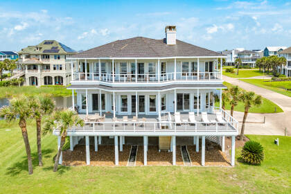 Experience coastal living at its finest in this stunning beachfront home, this single-owner home was custom-built by Purple Sage Construction in 1999. Ideally situated on a double lot at the end of Rum Bay in exclusive Pirate's Beach West, this home boasts panoramic, front row Gulf views. The open-concept living and dining area with a fireplace, complete with serving bar, and wall of windows facing the Gulf, flows to a spacious main deck -- perfect for entertaining or sunset relaxation. The kitchen includes premium appliances and has a nearby pantry/utility room. Also on the main level, the primary suite includes a fireplace, enormous ensuite bath, and deck access. Upstairs you will find a second living area with fireplace, large office with Murphy bed, two bedrooms, and three full baths. Each room has access to a second-level deck with breathtaking views. The home also includes a 24KW Generac generator, Culligan (R/O) water system, whole-home dehumidifier and an elevator.