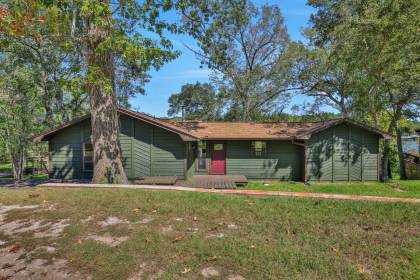 Discover your perfect waterfront escape with this charming one-story home, set on a beautiful 0.45-acre lot with towering trees. Nestled along tranquil Indian Creek, the property offers the feeling of seclusion with no homes across the water, while still being just a short distance from the main body of Lake Livingston. Inside, you'll find a spacious living area with soaring wood-accent ceilings, creating a warm and inviting atmosphere. The bedrooms are split plan with the primary en-suite on one side and two guest bedrooms/bathroom on the other. Step outside to enjoy the great outdoors on the multi-level back deck, or unwind in the screened-in porch, perfect for evening relaxation with serene water views. Whether you’re looking for a peaceful weekend retreat or your forever home, this lakeside gem is an opportunity you won’t want to miss. The existing boathouse is in need of structural repair.