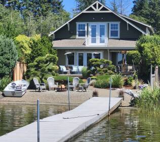 Luxury lakefront! 3000+ sf custom craftsman offers south-facing views, a sloped pebble beach, dock, outdoor kitchen, very private patio and deck, fence, meticulous landscaping, custom greenhouse, and shed. Enjoy watersports, kayaking, and year-round fishing on Spencer Lake. The spacious kitchen features granite counters, double ovens, induction cooktop, eating peninsula, and walk-in pantry. The primary suite showcases soaring lake views, fireplace, huge walk-in closet, extra-large tile shower, and soaking tub. Large bonus room with kitchenette. Built-ins throughout. Near restaurant, stores, gas, and saltwater launch. Move in and enjoy lake life!