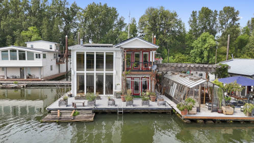 To say opportunity knocks here is an understatement! This floating home for sale is located at Rivers Bend Marina where residents enjoy vast uplands including gardening, a picnic/concert area, boat launch and gated parking. The view is absolutely stunning. Situated on the Multnomah Channel, looking across at Sauvie Island, you will be in paradise! The floating home features floor to ceiling windows in the double height living room, extremely spacious kitchen and dining area, walk in mud room & pantry and full bath on the main. The cozy fireplace and the newly refinished oak hardwood floors (floors August 2024) add warmth and elegance. Upstairs the primary bedroom is oriented to the river with balcony, walk in closet, and ensuite bath. The second bedroom (currently non-conforming) would make a wonderful guest space or office. Just add a wall and door for a traditional 2nd bedroom if you choose. This home is energy efficient with updated electrical and solar panels! Also featured is a central vacuum system. Float inspection August 2024 rated 3+ (needs minor attention). ALL new stringers and 2 logs in 2019 by Harbor Services. LOW monthly fee of $325/month.