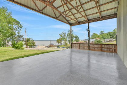 Welcome to this unique barndominium - a great set up for entertaining and gathering with friends! Situated on three lots, this property features an awesome covered back patio with breathtaking water views overlooking the community boat ramp. There are two 12' roll up doors on the front along with overhang for additional parking. On the lake side there is a 10' roll up door which you can open up and enjoy the breeze. Inside there is plenty of room for storing your boat or vehicles along with one bedroom, bathroom/laundry and kitchen area for food prep. Outside, the property includes two covered RV spots with full hookups plus storage shed. Holiday Villages on Lake Livingston has a community center, boat ramp, community pool and a full calendar of events for residents to enjoy. This property is a great spot to enjoy the community annual 4th July Fireworks display. The new owner could divide the three lots if preferred.