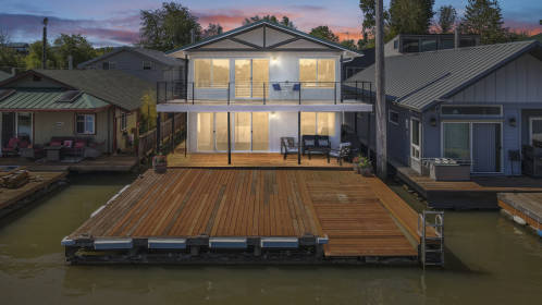 Welcome to the Sunburst House! This exceptionally beautiful floating home is in excellent condition, in a perfect location with stunning river, Sauvie Island & Mount Hood views. It is the result of a twelve-year complete remodeling and upgrading of everything from float to roof inside and out. It features high-end materials and finishes throughout, such as mahogany cabinets & trim and granite countertops. The impeccable workmanship and attention to detail must be seen to be fully appreciated. It is very well insulated and has a huge floored attic for extra storage. Located on the picturesque and quiet Multnomah Channel at Larsons Moorage, which is right at the hub of the three major rivers in the Portland area. Fuel dock at nearby Freds Marina & just 2 minutes to the Willamette or 7 minutes to the Columbia, or just fish right outside your door. Zipping about in the boat is easy thanks to the rolling davit system (dinghy and davit are included in the sale)! The shop area is covered and well lit for those who like to tinker. The pantry/laundry room is massive with pull outs shelving drawers. Go ahead, stock up at Costco. To top it all off the inviting sunroom makes a perfect home office or guest quarters. The great room is surrounded by beautiful Milgard architectural aluminum windows with a 10-foot slider which opens up to the generous cedar deck. It is a short commute to Portland or Scappoose for shopping and dining. Forest Park with its biking and hiking and Sauvie Island with its concerts, farm to table events, farmer's markets and sandy beaches are right in your backyard. The unobstructed view from the great room and the river deck is unsurpassed from Mount Hood to the Sauvie Island bridge and beyond. The Sunburst Home is a Stunner and won't last long.