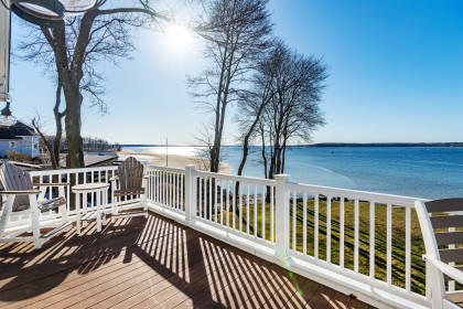 This is a very rare waterfront opportunity overlooking Greenwich Bay with stunning views from Warwick Neck to East Greenwich and Goddard Park. This young Victorian cottage has been lightly used as a summer home since constructed and views like a brand new home. Features stunning cherry floors throughout the home, two fireplaces, 3 large bedrooms, and 3.5 luxury baths/ The 2nd floor primary suite has a wraparound deck that offers both sunrise and sunset views. This deck is mirrored by an even larger wrap around off the livingroom and kitchen on the first floor. Direct sandy beachfront, mooring potential, pool potential, oversized two car garage, full basement for expansion or storage, fabulous landscaping, and too many upgraded features to list here. A must see for any waterfront buyer!