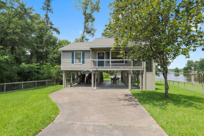 This cozy two-bedroom, one-bathroom waterfront home offers a perfect blend of tranquility and natural beauty. As you step inside the home you are greeted by an open concept living, kitchen and dining area - great for entertaining family and friends. The upper, covered back deck is a great spot for your morning coffee and enjoying the lake view. The highlight of this property is its outdoor space. Situated on 0.3 acres you are surrounded by lush greenery and the feeling of privacy. Relax around the fire pit with friends or just enjoy the beauty of life by the lake. For water enthusiasts, the boathouse offers direct access to Lake Livingston where you can spend your days boating, fishing, or simply basking in the sun. The home has a freshly painted exterior, storage shed for all the lake toys and outdoor elevator for groceries/coolers. Under the home there is room for parking, storage or it could be set up as additional covered outdoor space. Schedule your private tour today!