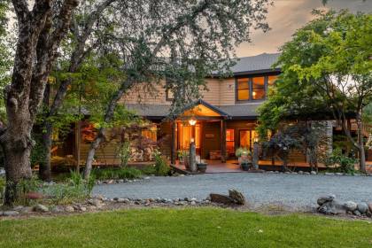 5 bedroom 3 1/2 bath custom home on 15.77 acres. Slate, Pine plank and Tile flooring. Artisan stained glass accents, custom cabinetry, solid wood doors, Windsor wood windows throughout. New Anderson windows in the sunroom. Stone fireplace in living room, Hardi Plank concrete siding, enclosed soffits & Ironwood decking. Chefs kitchen with a 48" Wolf gas range w/ 4 burners, grill, griddle and double oven. Spacious main suite with corner fireplace. Upstairs- 4 bedrooms, family room with wet bar & gas fireplace, covered deck and office. Laundry areas on both floors. Detached 2-car garage plus workout room. 288 sf +/- shop. 780 sf +/- garage & carport. Mature landscaping 3 ponds, 1 stocked with fish, sandy beach & gazebo. Fenced vegetable garden, fruit trees, kennel w/ outdoor dog washing station, chicken house, fenced paddocks, sand arena & round pen, trail access to the River. Outdoor fire pit, commercial irrigation with water filtration system, 5 inches of BVID irrigation water. A spectacular one of a kind property. Perfect for a primary or vacation home. 1-2 hours to Sacramento International Airport or Lake Tahoe.