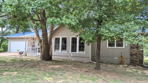 One level 3 bedroom 2 bath home with 2 car garage. A few acres are cleared for a park like setting with the remainder wooded. The house sits back from the road for privacy and better view of the lake. All electric home, except for wall back up heater and gas fireplace. Split floor plan for privacy. Primary bedroom has walk in closet and private bath. Second bedroom also has a walk in closet and shares second bath with third bedroom. Vaulted ceiling in living/dining room. French doors to covered back deck and backyard. Includes dock and sandy spot to enjoy the lake. Stainless steel appliances included-fridge, stove, dishwasher plus w/d. Watch Virtual Tour! Metal roof, newer windows throughout, newer heat pump. Crown Lake is the largest lake in Horseshoe Bend at almost 650 acres, plus there are other lakes in the area. Horseshoe Bend is a small community in Izard county in north central Arkansas.