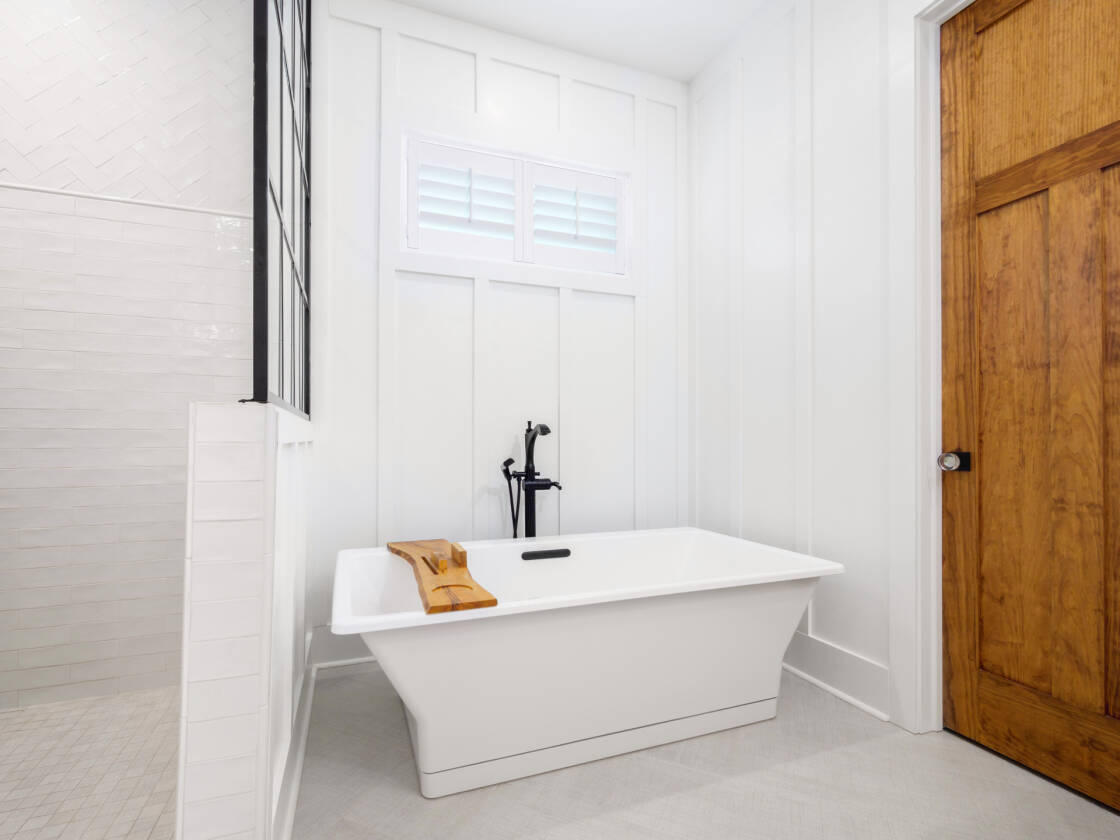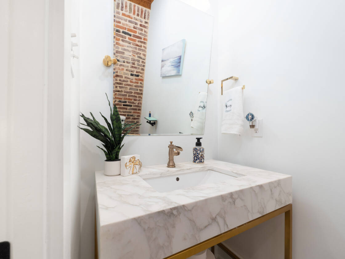 - Primary bath has dual vanities, linen cabinet, separate cast iron tub, separate shower, water closet, quartz counters