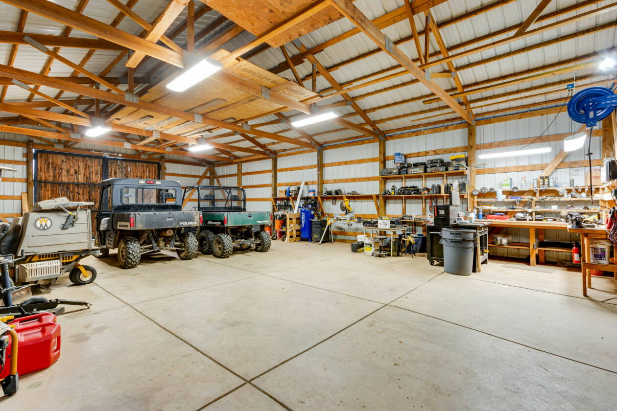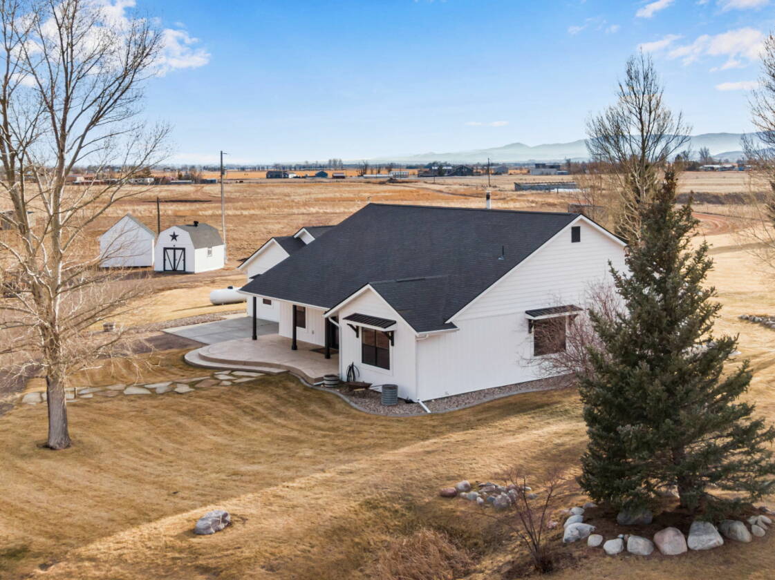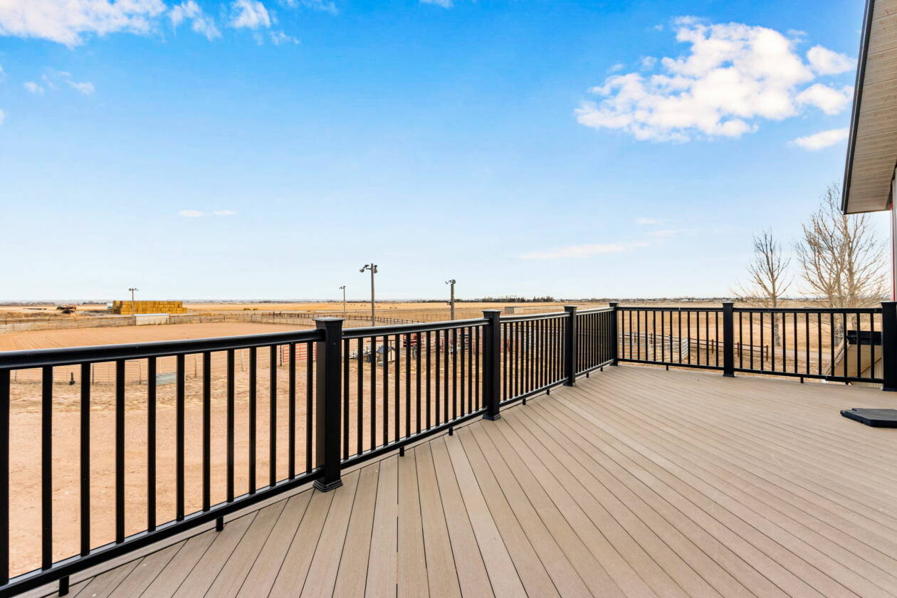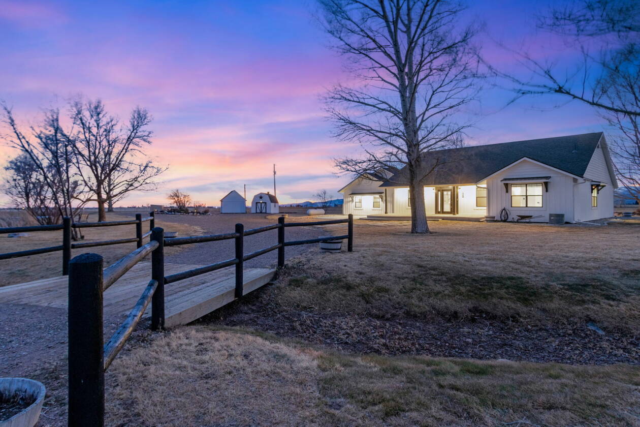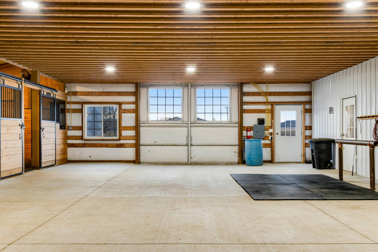 Exceptional, fully updated equestrian estate on 35.669 acres w/ NO HOA, NO METRO TAX & open zoning. Originally built in 1998 & extensively remodeled in 2023, offering privacy, functionality, & panoramic Rocky Mountain views. This rare property features a stocked pond w/ bass, dock, & sitting areas; 4 fenced pastures; 5 loafing sheds; round pen; 240' x 137' lite riding arena; pump shed; 3 storage sheds; & 8 exterior water hydrants, all accessed by a private driveway set back a .5 miles from the county road for privacy. Equestrian amenities are anchored by a 3,888 sq ft barn featuring 6 stalls each w/ private runs, tack room, wash bay, hay storage, a 2,232 sq ft loft, main-level concrete patio, & upper-level observation deck. A 1,545 sq ft detached drive-through RV/boat garage & shop features 220V, added electrical, air compressor, & included shelving, cabinets, & workbench. The park-like setting includes mature landscaping, sprinkler & drip systems, wood-burning fire-pit, horseshoe pits, expansive east-facing patios for sunrise views, & west-facing covered & uncovered patios w/ ceiling fan overlooking nightly Rocky Mountain sunsets. The primary residence showcases a split floor plan, front office, formal dining, white trim, new windows & doors, upgraded lighting, new paint & carpet. The chef's kitchen features a large island, quartz countertops, SS appliances, 6-burner gas range, commercial hood, double ovens, warming drawer & a walk-in pantry. Living spaces include a family room w/ wood-burning fireplace, oversized bedrooms including a private guest en-suite, 2 beds w/ a Jack-and-Jill bath, & a luxurious primary bedroom w/ retreat featuring a 5-pc. bath, & two walk-in closets. Home also features a massive laundry room designed for everyday efficiency & includes a mini refrigerator & ice-maker.