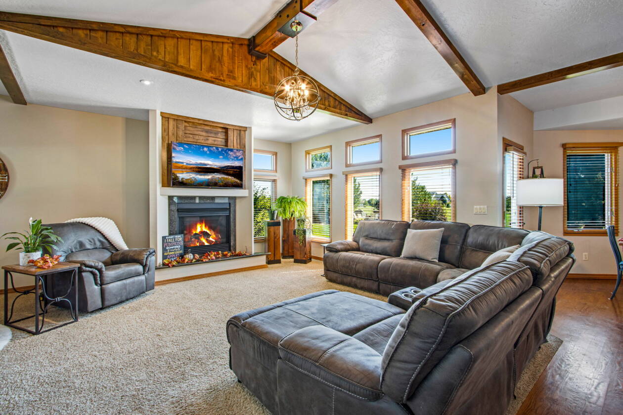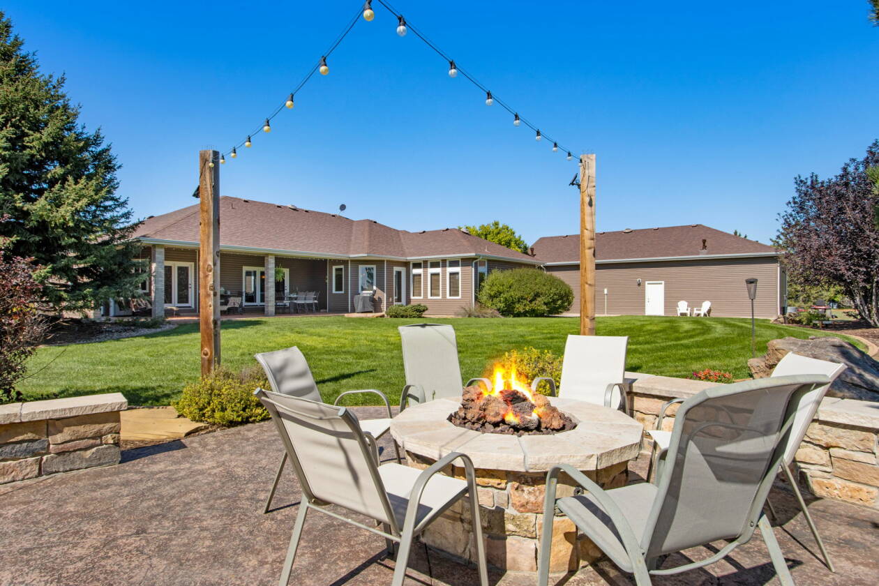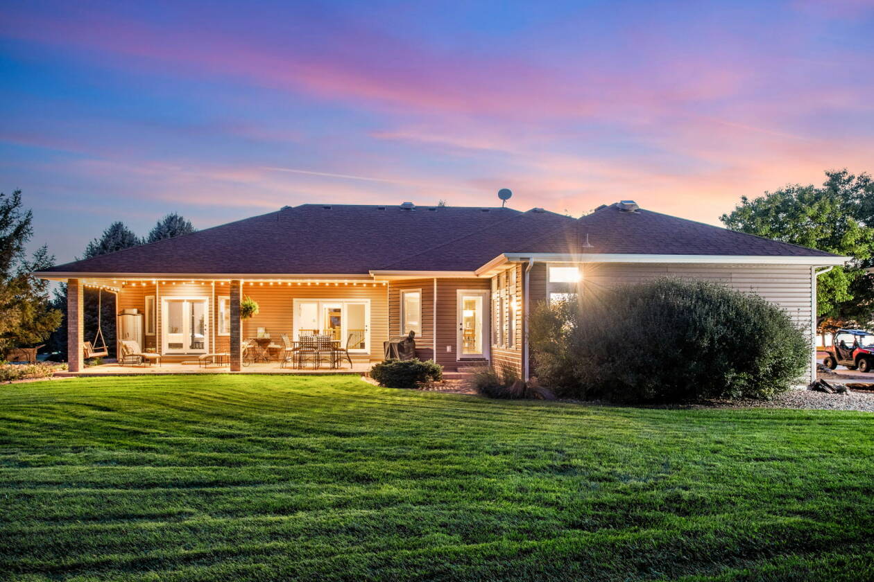 Pre-Inspected with 1 Year Gold Plan Blue Ribbon Home Warranty. This sprawling ranch sits on a 2.53-acre lot and features nearly 6,000 total square feet with 5,829 finished. The property includes an oversized 628 sq. ft. attached garage plus a 1,560 sq. ft. detached RV/Boat/Toy garage/shop. Incredible finishes inside and out. The main level offers a spacious foyer, formal dining, formal living, laundry room, great room with gas fireplace, three guest bedrooms (one easily used as an executive office), and a primary suite with retreat, walk-in closet, and five-piece bath. The kitchen boasts cityscape cabinets, granite slab countertops, a large center island, pantry, and stainless-steel appliances. The professionally finished basement includes three recreation spaces, a family room with a second gas fireplace, a flex room, and two additional bedrooms. Two high-efficiency furnaces, two water heaters, two AC units, and many more upgrades throughout, including hardwood floors, vaulted ceilings, iron railing, tile, six-panel doors, and a premium lighting package. The exterior features mature landscaping, a front courtyard, and a large covered backyard patio with beautiful lake views, sprinkler/drip system, room for gardens, outdoor bar and water feature. The west-facing front provides plenty of natural sunlight and snow melt for the driveway, plus stunning nightly sunsets, while the east-facing back offers cool summer shade, lake views, and breathtaking sunrises. Call today for a detailed list of features, a floor plan, or to schedule a private showing.