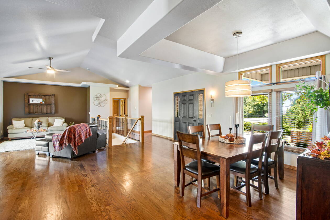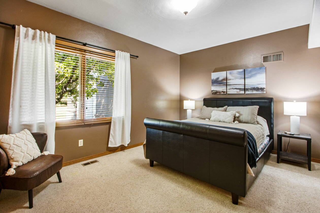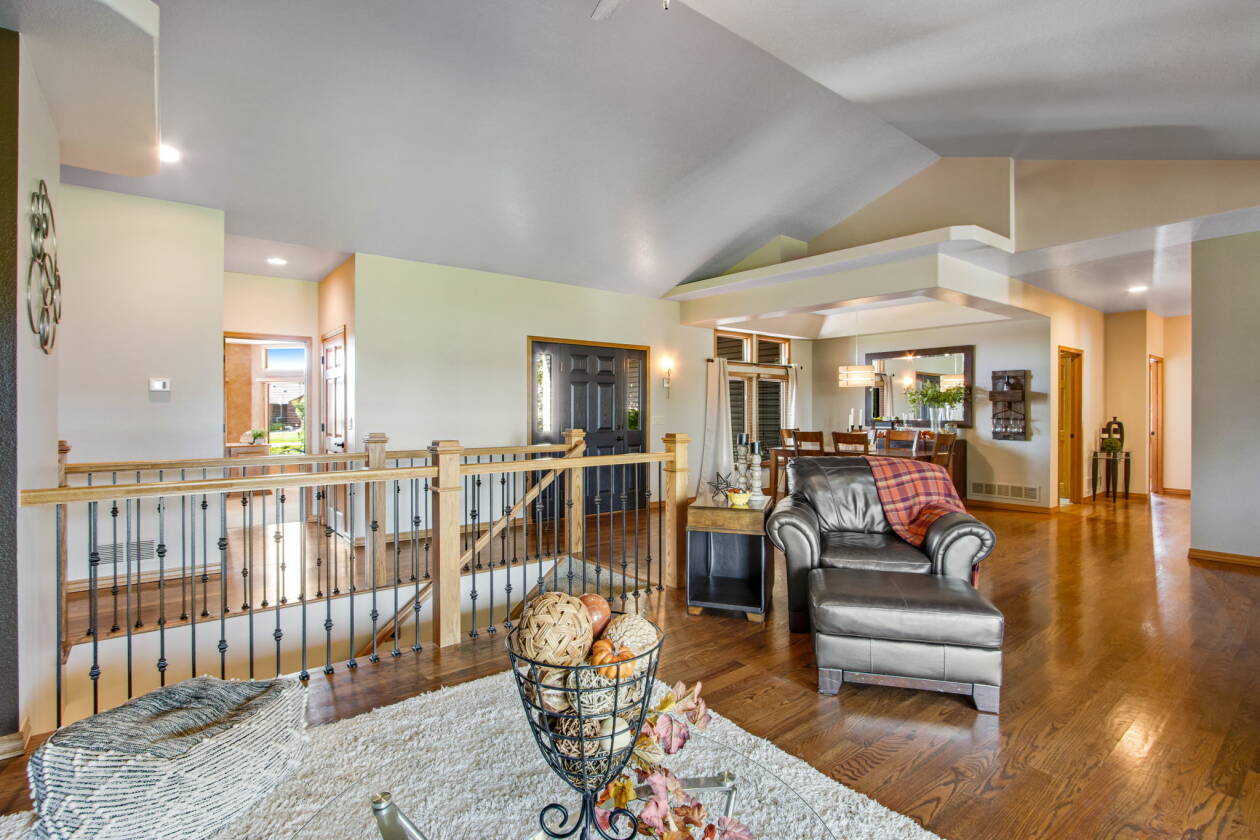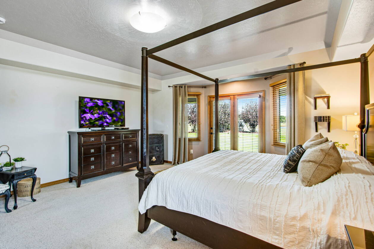 Pre-Inspected with 1 Year Gold Plan Blue Ribbon Home Warranty. This sprawling ranch sits on a 2.53-acre lot and features nearly 6,000 total square feet with 5,829 finished. The property includes an oversized 628 sq. ft. attached garage plus a 1,560 sq. ft. detached RV/Boat/Toy garage/shop. Incredible finishes inside and out. The main level offers a spacious foyer, formal dining, formal living, laundry room, great room with gas fireplace, three guest bedrooms (one easily used as an executive office), and a primary suite with retreat, walk-in closet, and five-piece bath. The kitchen boasts cityscape cabinets, granite slab countertops, a large center island, pantry, and stainless-steel appliances. The professionally finished basement includes three recreation spaces, a family room with a second gas fireplace, a flex room, and two additional bedrooms. Two high-efficiency furnaces, two water heaters, two AC units, and many more upgrades throughout, including hardwood floors, vaulted ceilings, iron railing, tile, six-panel doors, and a premium lighting package. The exterior features mature landscaping, a front courtyard, and a large covered backyard patio with beautiful lake views, sprinkler/drip system, room for gardens, outdoor bar and water feature. The west-facing front provides plenty of natural sunlight and snow melt for the driveway, plus stunning nightly sunsets, while the east-facing back offers cool summer shade, lake views, and breathtaking sunrises. Call today for a detailed list of features, a floor plan, or to schedule a private showing.